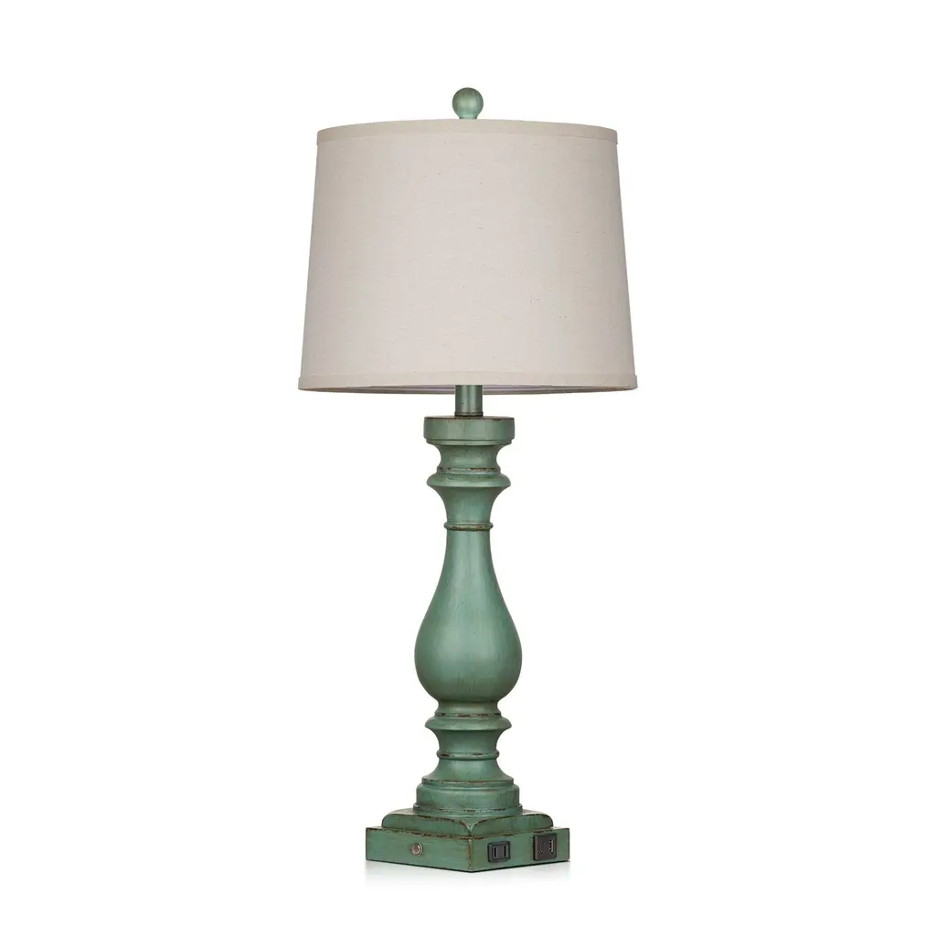 Table Lamps Green Resin Universal Usb Type-C Charging Ports Ac Outlet (Set Of 2) - 12.5'' X 12.5'' X 28.5'' (L X W X H) - 12.5'' X 12.5'' X 28.5'' (L X W X H) - Green