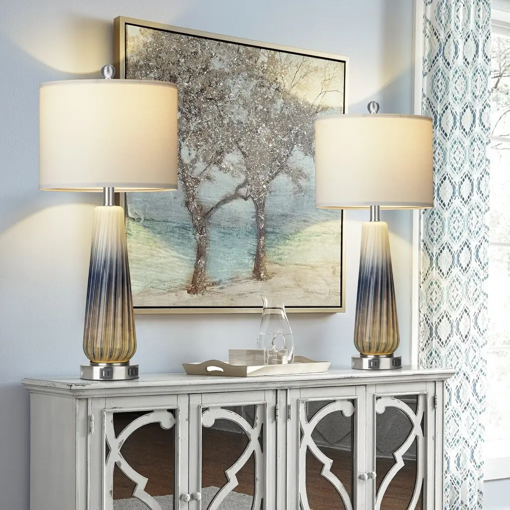 Table Lamps Nightlight 2In1 Glass Blue Ripple Style With Rotary Switch Touch Switch (Set Of 2) - 12'' X 12'' X 27'' (L X W X H) - 12'' X 12'' X 27'' (L X W X H) - Blue