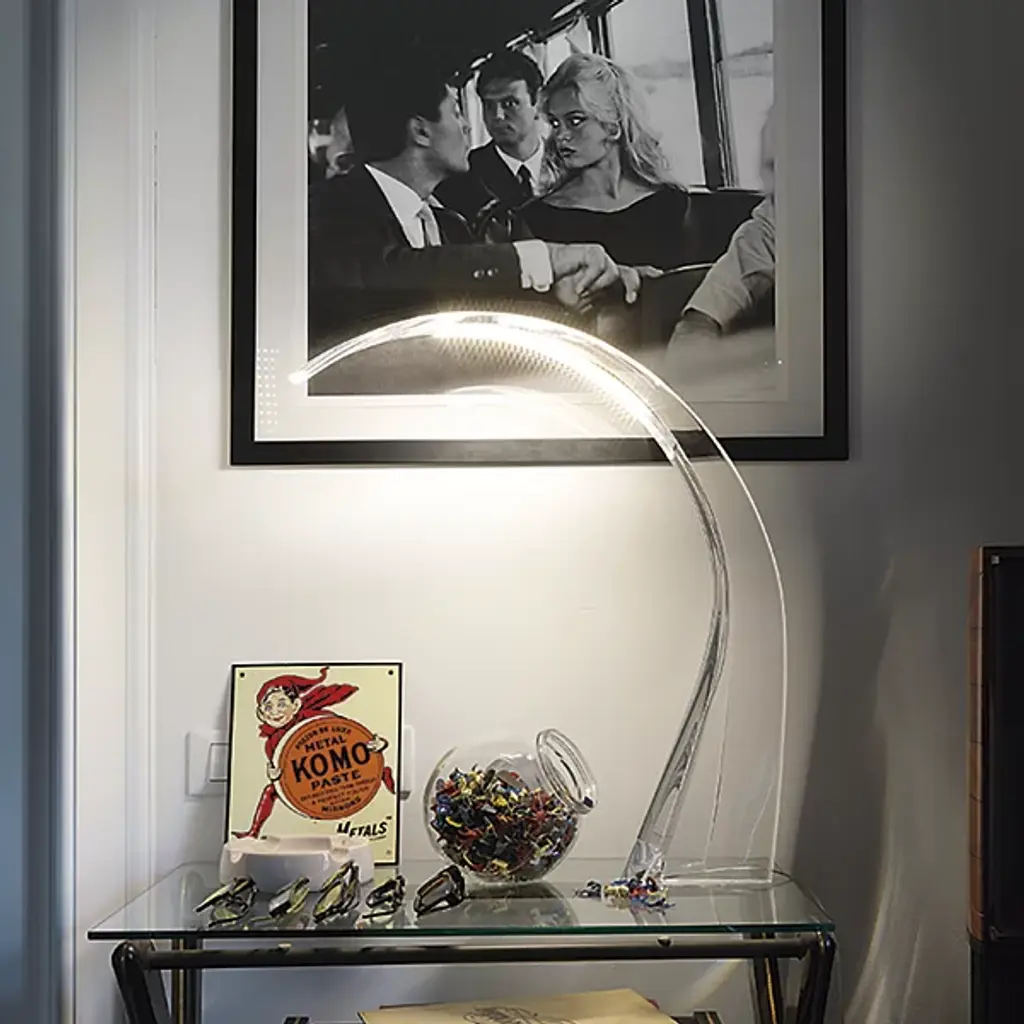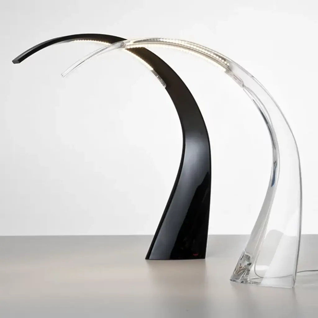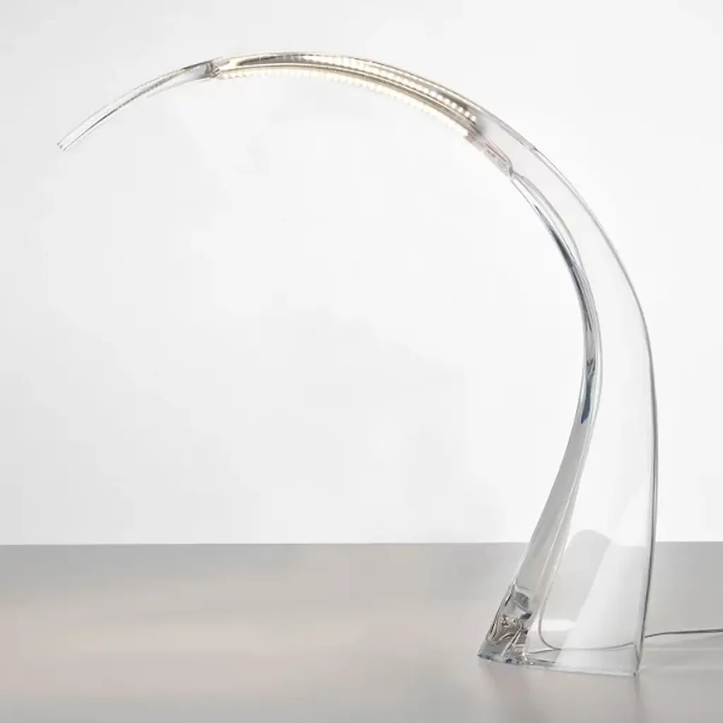 Described by designer Ferruccio Laviani as both essential and bold, "like a comma," the Kartell Taj LED Table Lamp is uncluttered, minimal, and incredibly sensual. The strength of the piece is instantly evident (inspired by the graceful curve of an elephant's tusk), and the touch sensor/slide dimmer is intrinsic to the fixture, located right below the LED array.