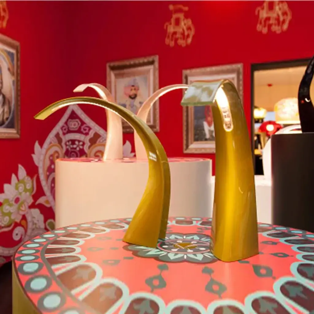 Hot on the heels of the success of the Taj LED lamp is the mini version on a smaller scale, more versatile and practical. Mini Taj is a more discreet presence on the scene and is perfect on the night table but nevertheless makes a statement; it comes in a new color range distinguishing it from its "big sister". Features