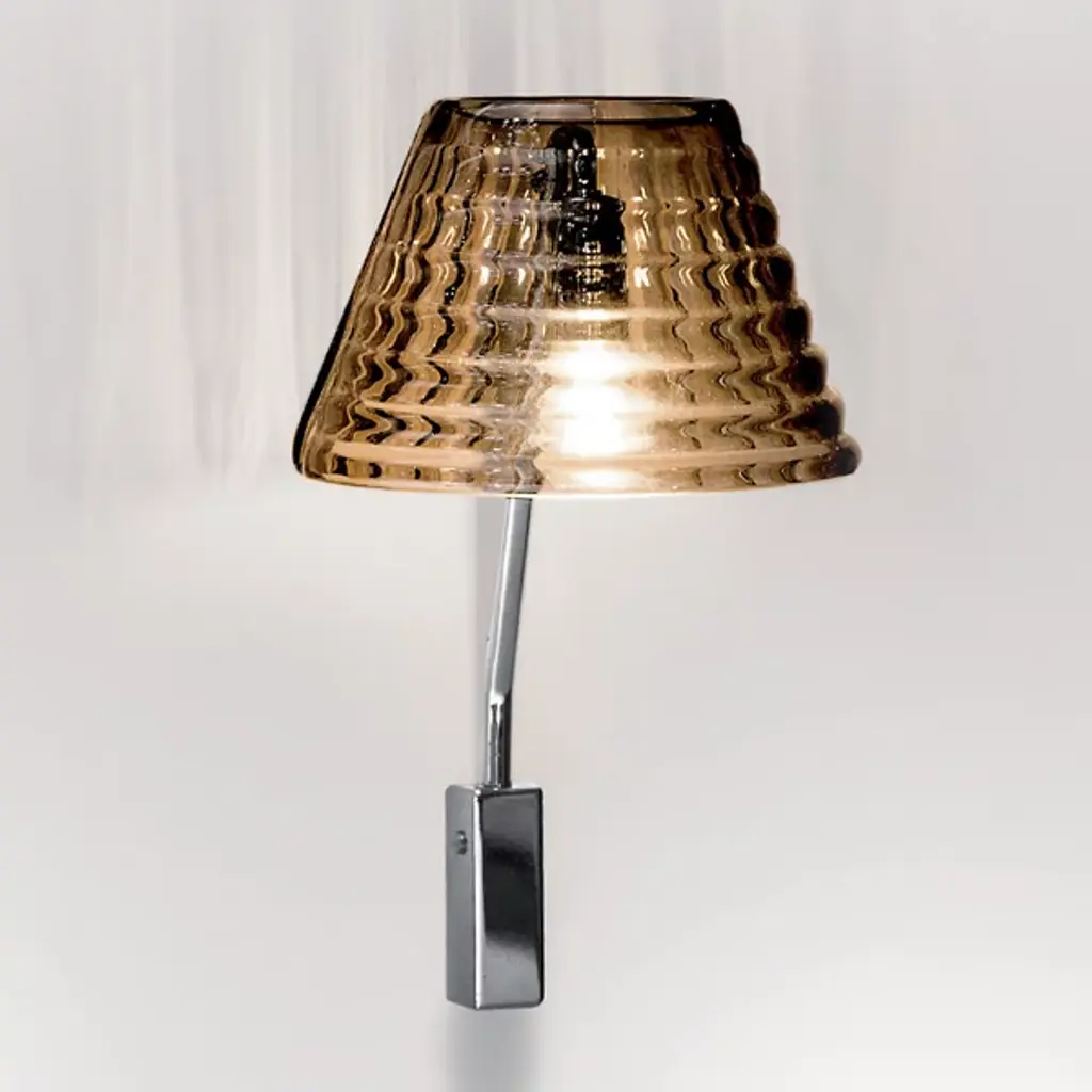 The classic icon of the bedside lamp is revisited by Kartell's technology to become an industrial product in a variety of colour shades. The shape of Take is the result of the joining of two specular parts: two flat, rectangular sheets which, from being two-dimensional at the centre, take on the shape and volume of a "semi-lamp". The internal pleating of the diffuser embellishes the object, creating, when lit, a play of reflections.