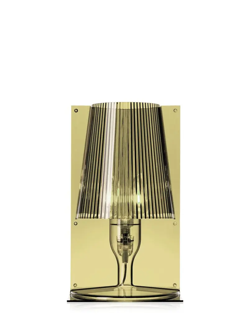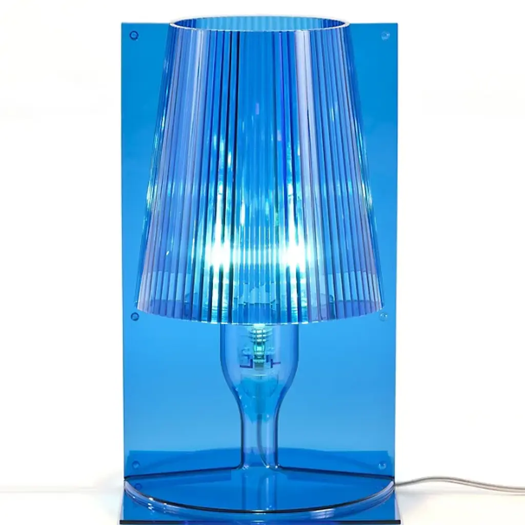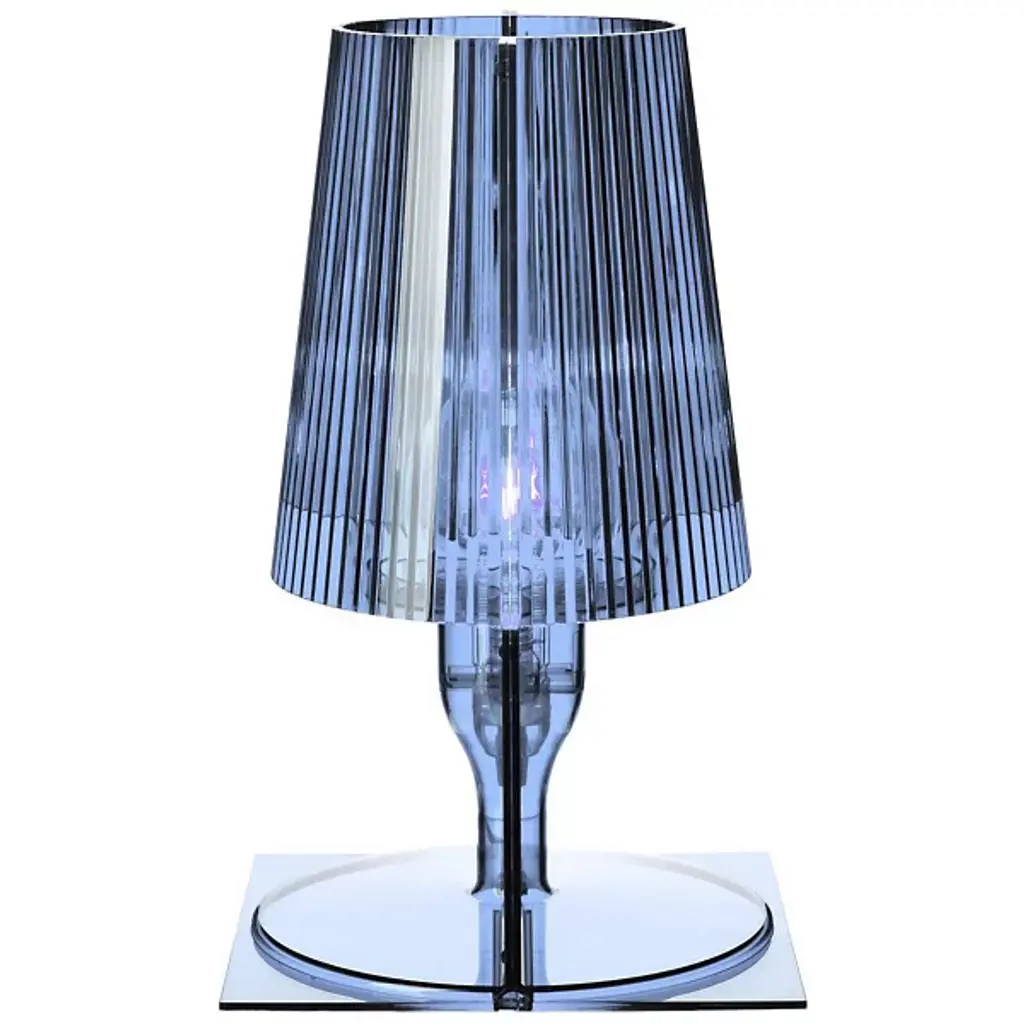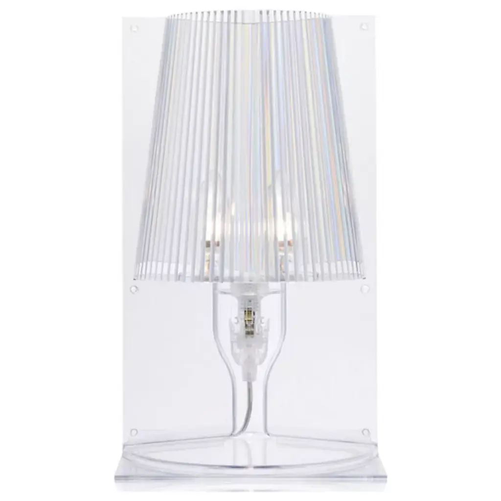 The Kartell Take Table Lamp happily transforms tabletops with its sparkling rays light. Designed by Ferruccio Laviani, it features two sections molded polycarbonate that are fitted together to create a full lamp form and circle-on-square base.