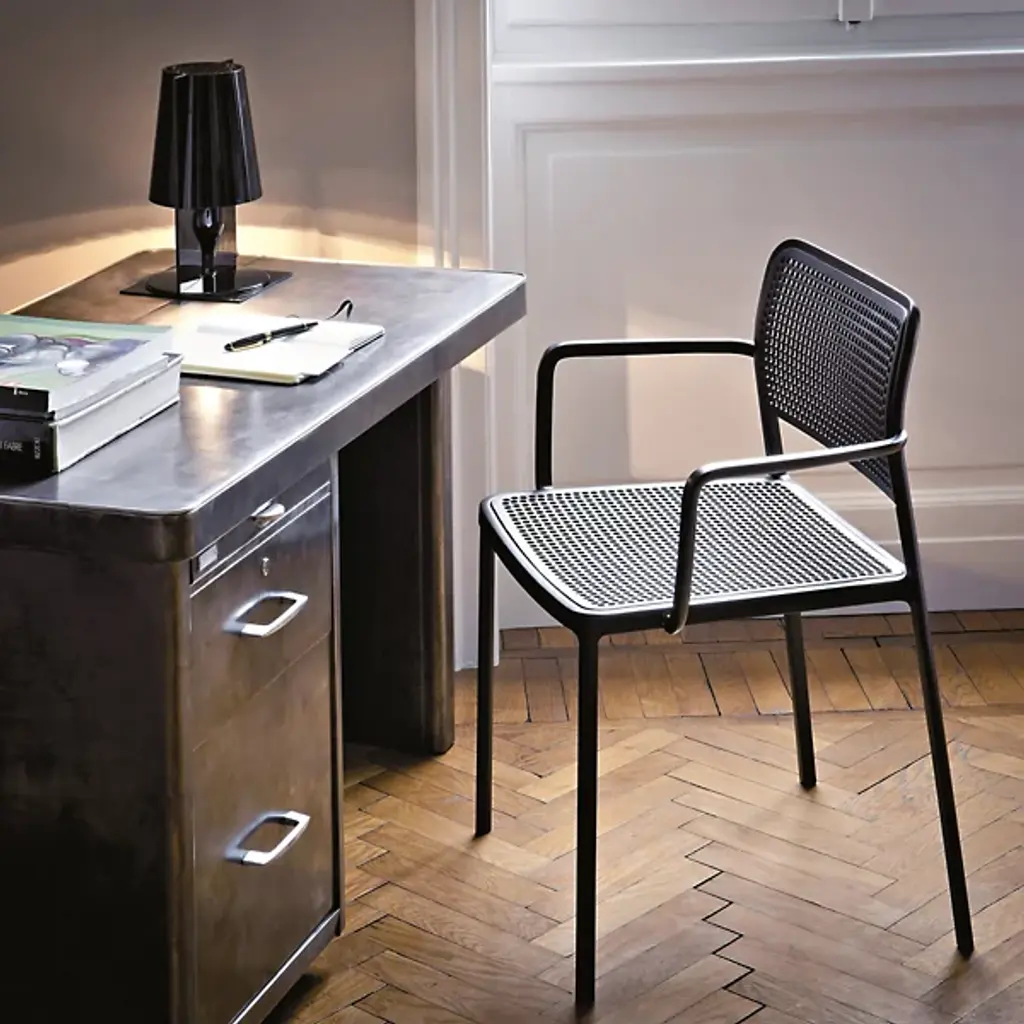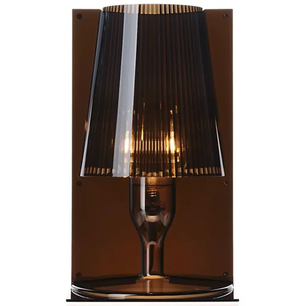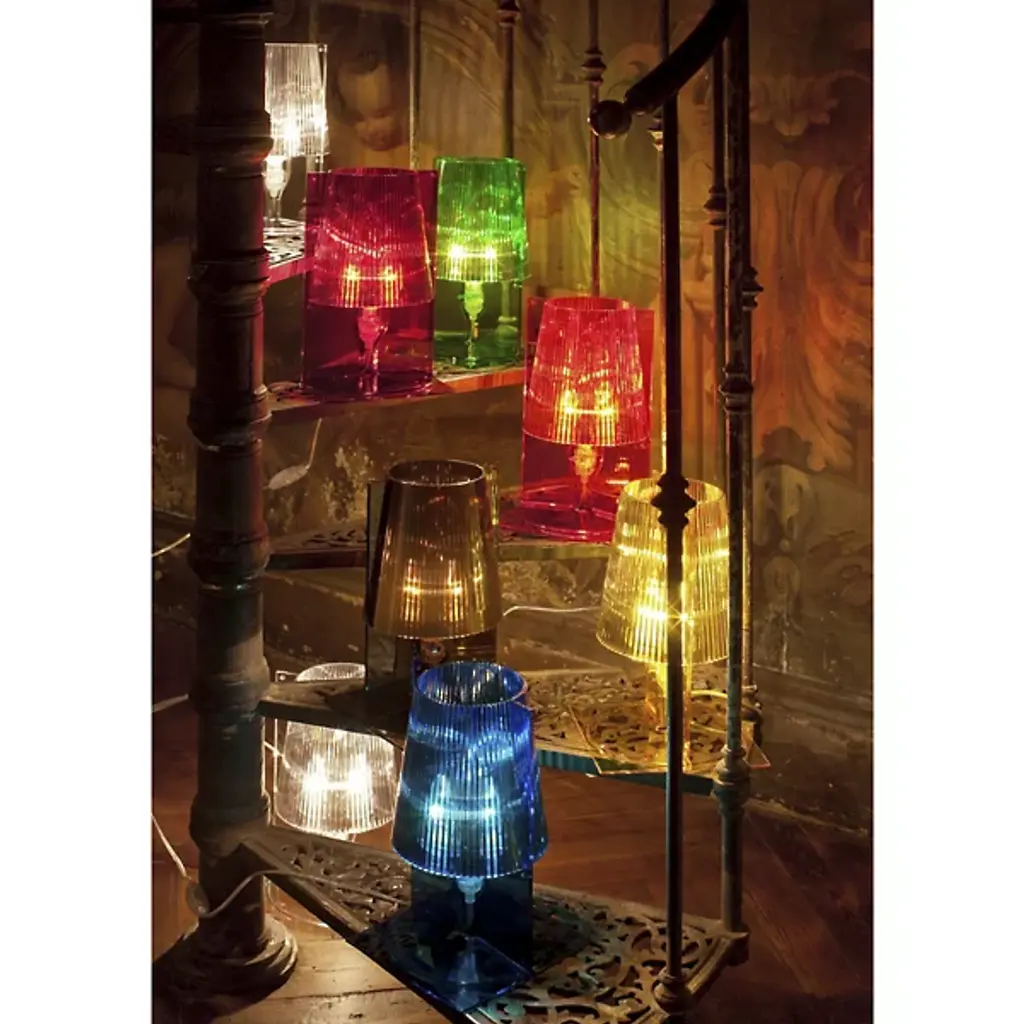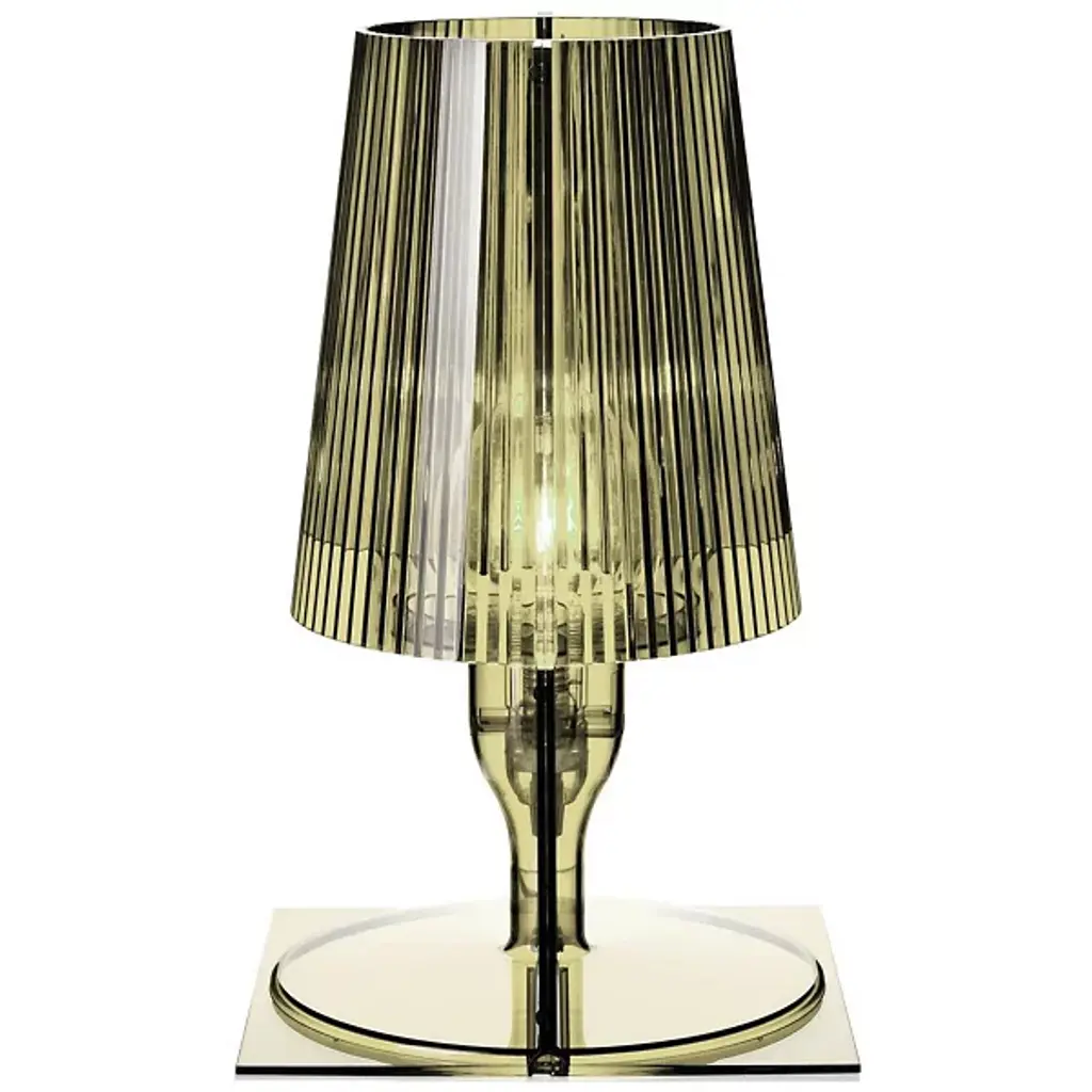 The Kartell Take Table Lamp happily transforms tabletops with its sparkling rays light. Designed by Ferruccio Laviani, it features two sections molded polycarbonate that are fitted together to create a full lamp form and circle-on-square base.