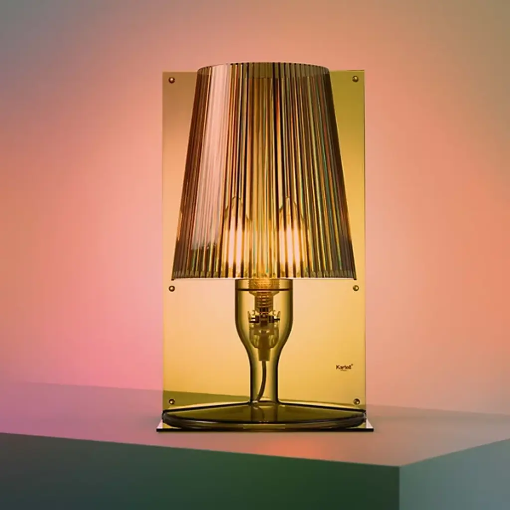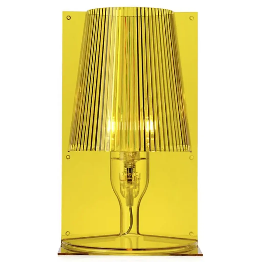 The Kartell Take Table Lamp happily transforms tabletops with its sparkling rays light. Designed by Ferruccio Laviani, it features two sections molded polycarbonate that are fitted together to create a full lamp form and circle-on-square base.