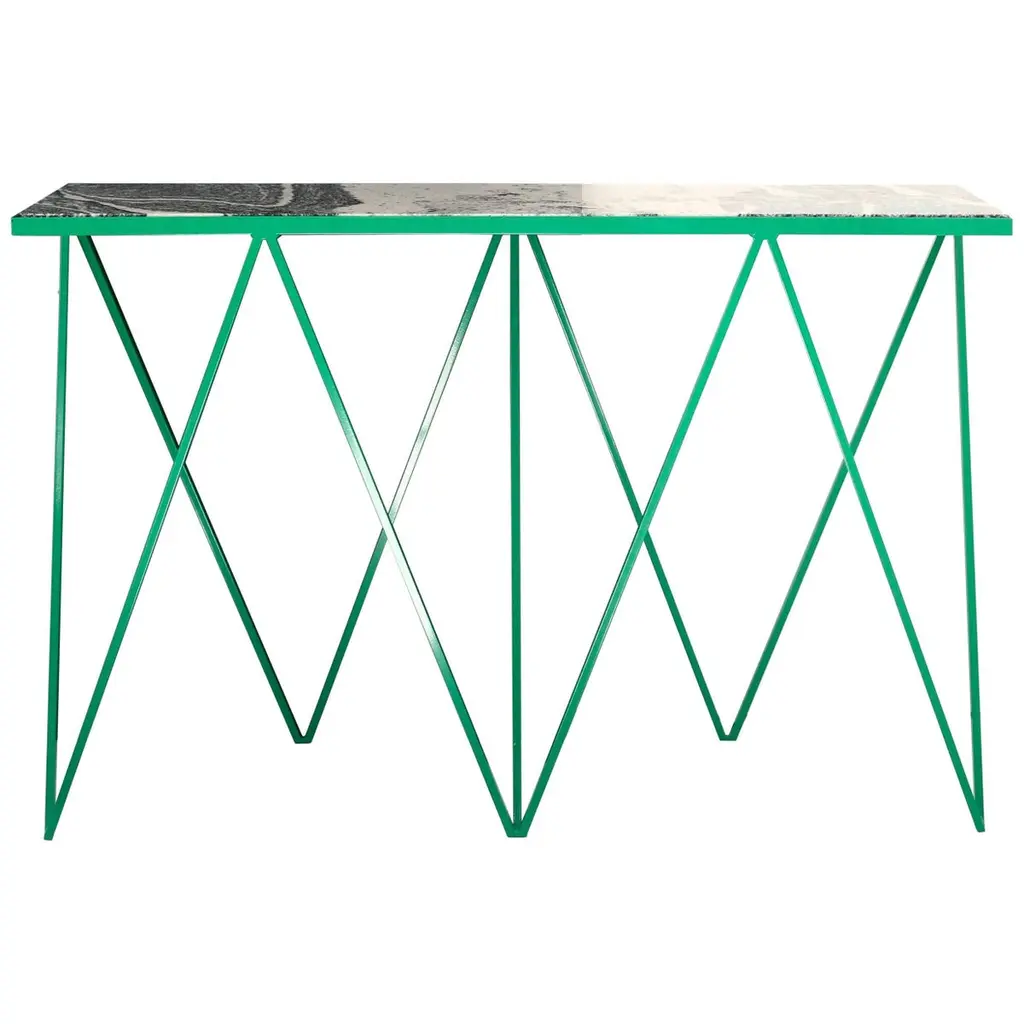 Tall Green Steel Console Table With Granite Table Top / Customizable