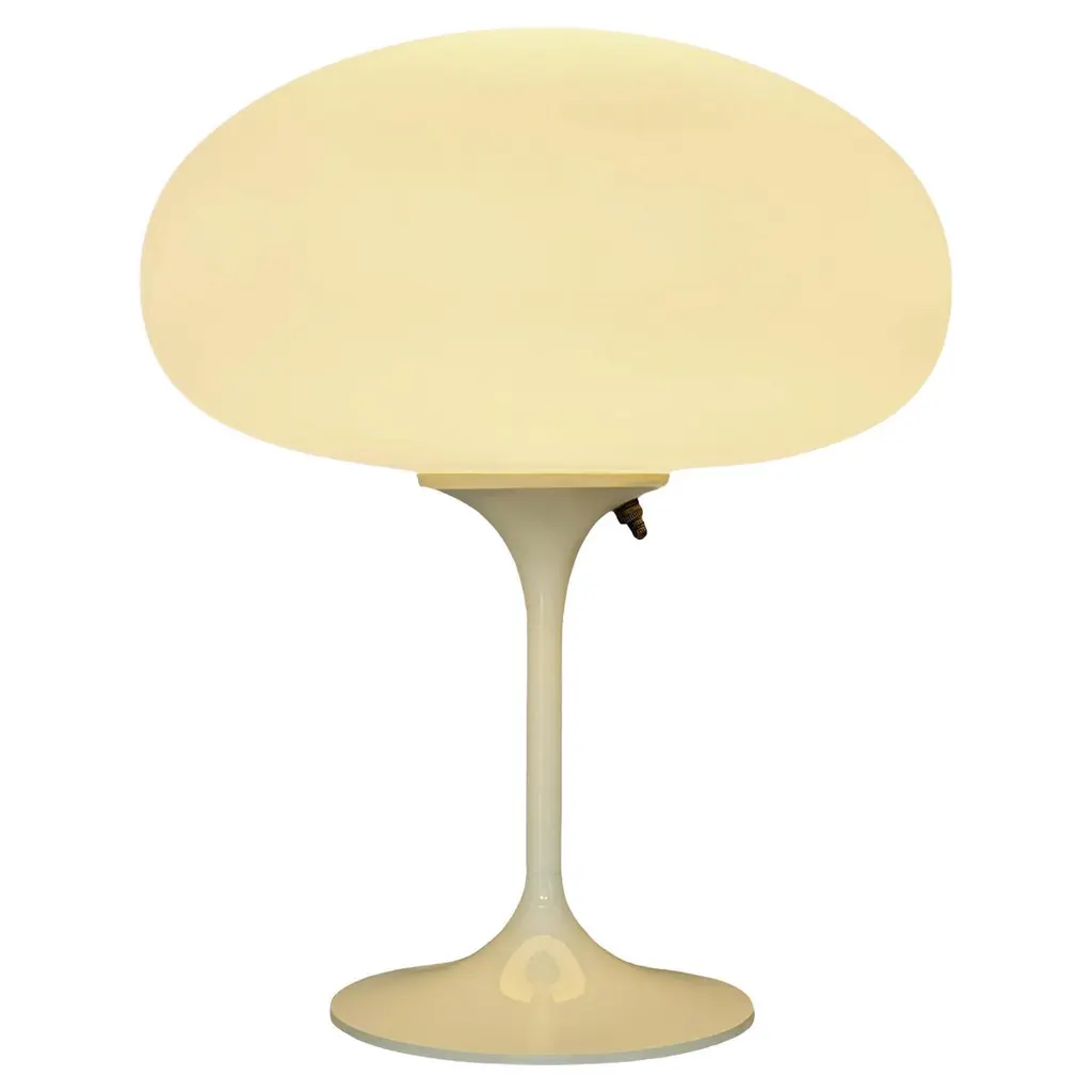 THIS ITEM IS ELIGIBLE FOR FREE SHIPPING!A sleek stemlite table lamp made by Design Line. It features a cast aluminum main base in a sculptural tulip form. The lamp base is finished in a brushed brass / gold finish. The frosted glass lamp shade is hand blown and gives off a soft warm filtered light. It works with one standard bulb up to 100 watts and plugs into a standard US outlet.These retro lamps work with all mid-century modern furniture & decor. Such as classic vintage mcm, art deco, space age, post modern, retro kitsch and contemporary design. Imagine a pair of these lamps used as bedside lamps, on end tables in a living room, or a matching pair on top of a vintage credenza. These lamps will compliment modern furniture from iconic designers like Charles Eames, Eero Saarinen, Harry Bertoia, Paul McCobb, Adrian Pearsall, Verner Panton, Florence Knoll, Joe Columbo, Hans Wegner & Arne Jacobsen. Use a single lamp as an accent lamp on your favorite cabinet or buy one as a funky desk lamp. These are sure to go with modern furniture manufacturers from the past and present. Confidently mix these lamps that fit with brands like Herman Miller, Knoll, Fritz Hansen, Kartell, Artemide, Planner Group, Niels Moller, Maurice Villency, and Thayer Coggin. If you have any question, please don't hesitate to message us.
