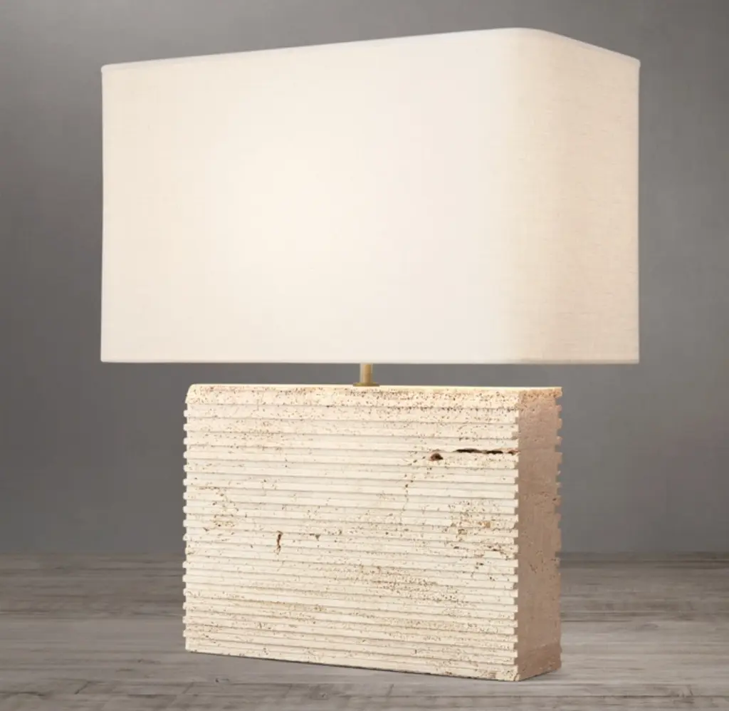 Tallado Classico Travertine Wide Rectangular Table Lamp