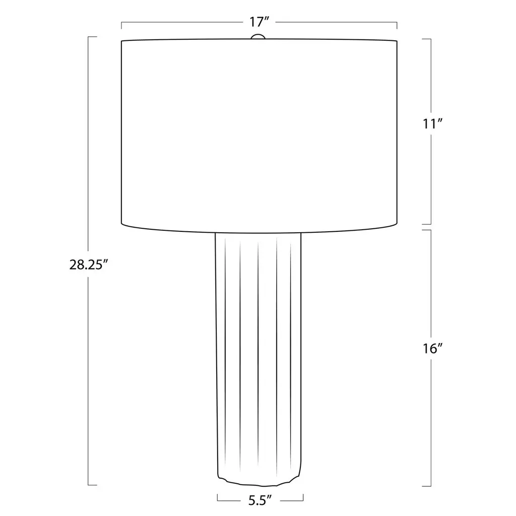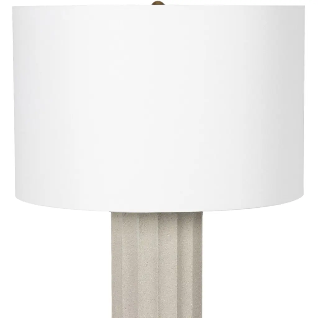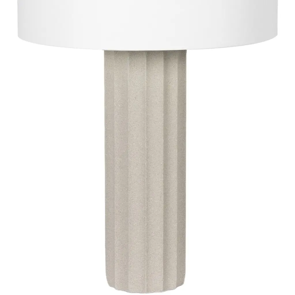The Tambour Table Lamp features a modern scalloped design with a natural concrete base, highlighting its unique texture and shape. The elegant natural brass components complement the concrete, creating a striking contrast of materials. This blend of industrial and refined elements adds a sophisticated touch to any room, making it a stylish choice for contemporary decor.
