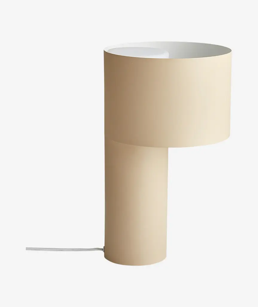 Tangent table lamp arose from an experimental study with tubes and proportion and how these can be joined together. A clean graphical design where two steel tubes meet at their tangential point of contact. On top of the inner metal tube is a shade made of opal glass that covers the bulb creating a soft light.