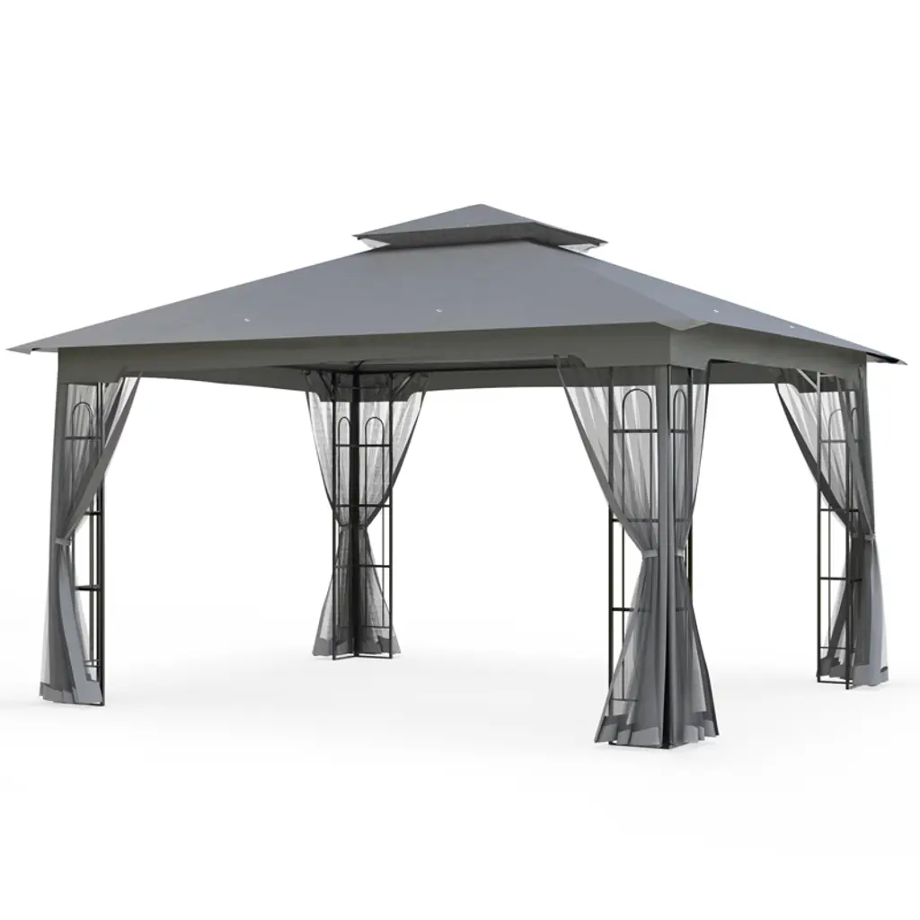 Tangkula 12ft X 10ft Patio Hardtop Gazebo Double Vented Roof Outdoor Galvanized Steel Sun Shelter Gray