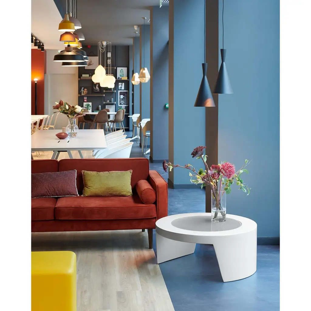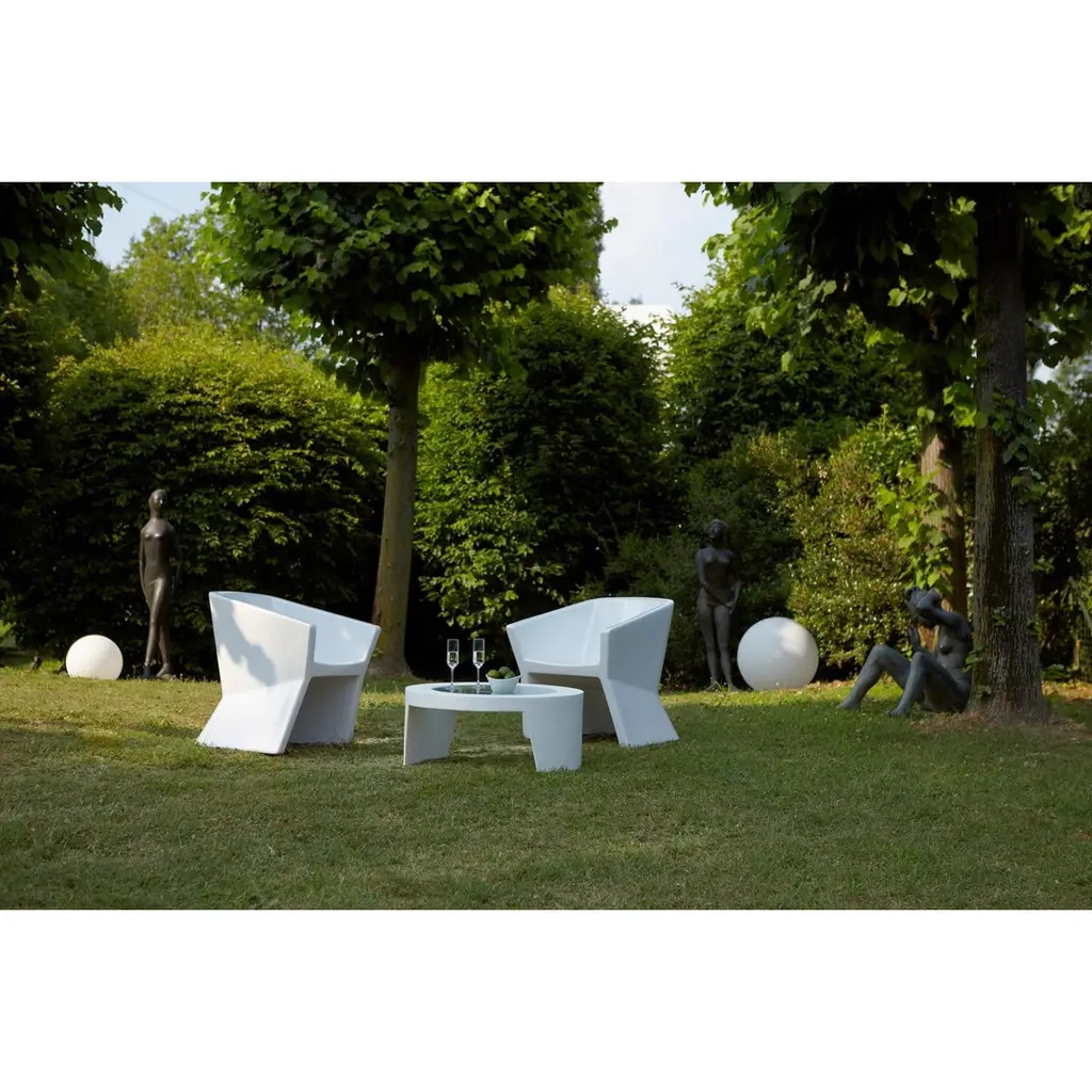 Tao Flame Red Coffee Table by Guglielmo BerchicciDimensions: Ø 80 x H 34 cm.Materials: Polyethylene and tempered/satin glass.Weight: 12 kg.Available in different color options. Prices may vary. This product is suitable for indoor and outdoor use. Available in a standard or lacquered version. Please contact us.Our stories happen in places precious to us. SLIDE was born from the desire to produce furniture and light to create the perfect atmosphere that highlights emotions.Design is inspiration, surprise, joy. It's the amazement of seeing something unique for the first time. It's creating spaces to feel good and live surrounded by beauty. It means giving a personal imprint to indoor and outdoor spaces. It means choosing your ideal element that is the perfect setting for emotions and experiences, which become indelible memories. The founder Giò Colonna Romano knows this well, combining his fervent imagination with thirty years of know-how in the processing of plastic resins, giving birth to SLIDE in 2002. The first note of amazement is the luminous furniture, which immediately became a must have in the world of events. Since 2015, his son Marco Colonna Romano has taken over the reins of the company, with the same desire to grow and innovate as his father. Thanks to a new panache and the team of young people it surrounds itself with, SLIDE becomes a beloved company for outdoor furniture: new shapes, materials and tactile textures have won the hearts and ideas of architects and interior designers around the world. SLIDE has thus created complete collections and furnishings, with new shapes, whose lines arise from collaboration with internationally renowned designers of the caliber of Alessandro Mendini, Paola Navone, Stefano Giovannoni, Fabio Novembre, Marcel Wanders, Karim Rashid, Marc Sadler, Francesco Favaretto and Marcantonio.New materials were chosen and inserted, initially soft and rigid polyurethane, and then comfortable cushions, waterproof fabrics, tactile textures ideal for completing the polyethylene furnishings with taste and class. But SLIDE does not forget its first essence, lighting: in recent years it has developed a line of much more technical lamps for large areas, essential in shape but with great visual impact. For the first time, Slide has managed to give an artisanal twist to an industrial process: to meet the increasingly high demands of living, the production creates non-replicable shades, in which every small imperfection enhances the industrial process and makes each piece unique . Because Slide's strength has always been the careful reading of the market, the creation of something that didn't exist and which then became necessary: here Slide continues its production in Buccinasco, on the outskirts of Milan, but its name and its products reach more than 130 countries around the world.