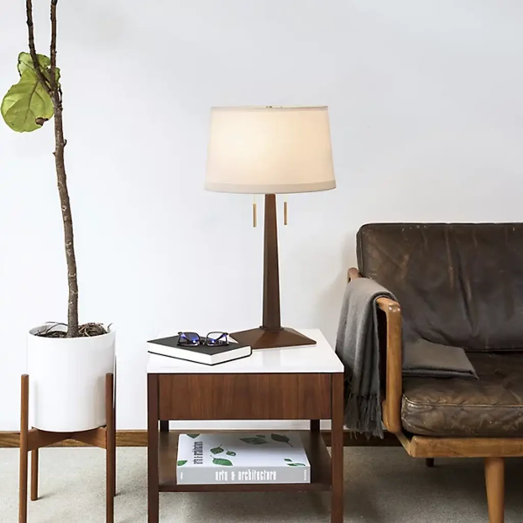 The Taper Table Lamp from Nova of California, designed by Jeffrey Botwin, incorporates solid brass pulls into its clean-lined figure. The dark walnut body rises from a geometric base, creating visual interest from every angle. Its linen Bordo Ampio shade ensures balanced light distribution, while smart home integration offers convenient control options. The precise joinery and thoughtful proportions highlight the designer’s careful attention to craft. This desk lamp is an ideal lighting solution for studies, reading corners, or bedside tables.