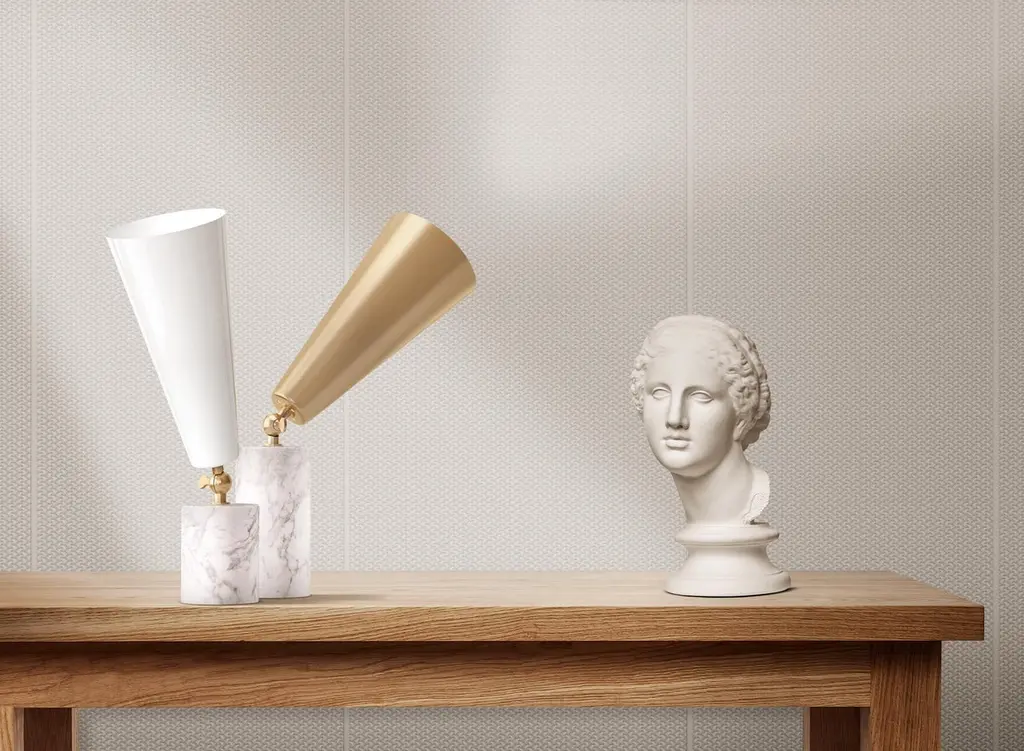 Tato Italia 'Vox' Table Lamp In White Carrara Marble, Chrome, And Glossy Black