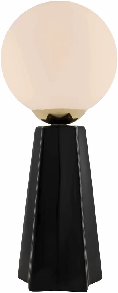 Collection: Tayeeglow Colors: Black, White, Translucent Material: Body: Ceramic / Shade (Outside): Glass / Shade (Inside): Glass Styles: Contemporary Made In: China Lighting Type: Accent Table Lighting Shade Material: Glass Shade Color: White Cord Length: 6' Switch Type: On/Off Number of Bulbs: 1 Socket Type: E-26 Bulb Wattage: 100W