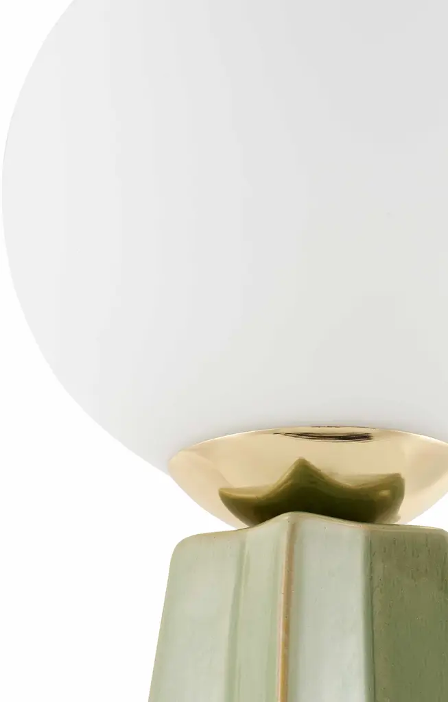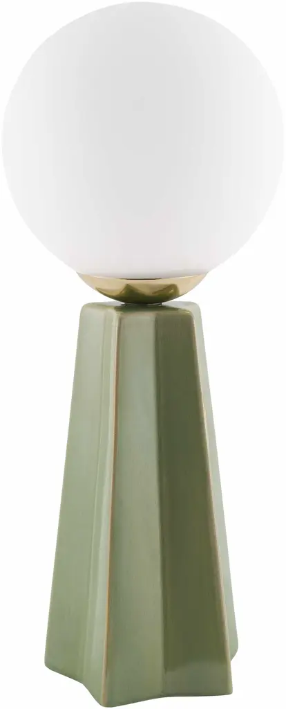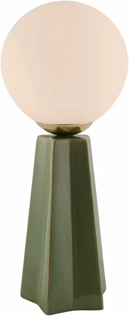 Collection: Tayeeglow Colors: Green, White, Translucent Material: Body: Ceramic / Shade (Outside): Glass / Shade (Inside): Glass Styles: Contemporary Made In: China Lighting Type: Accent Table Lighting Shade Material: Glass Shade Color: White Cord Length: 6' Switch Type: On/Off Number of Bulbs: 1 Socket Type: E-26 Bulb Wattage: 100W