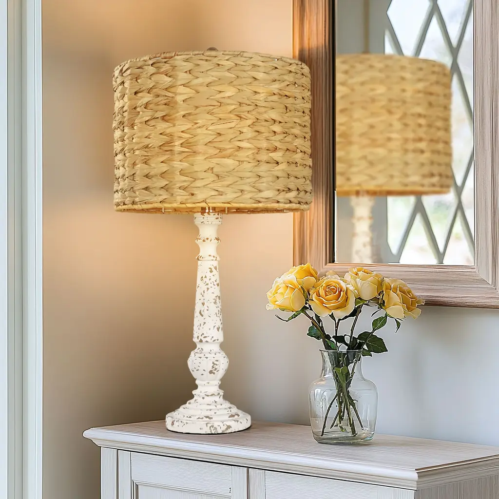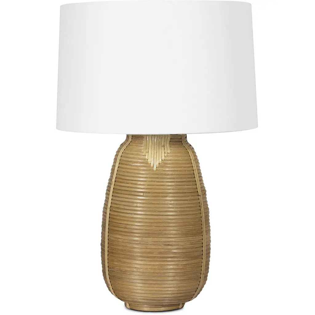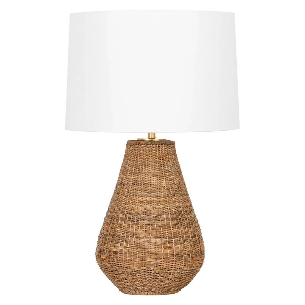 Infuse a classic silhouette with boho texture when you light up your space with this rattan-shade table lamp. Featuring a teardrop-shaped glass base, topped by a wavy strand rattan shade. Plugs in to power on with rotary socket switch.
