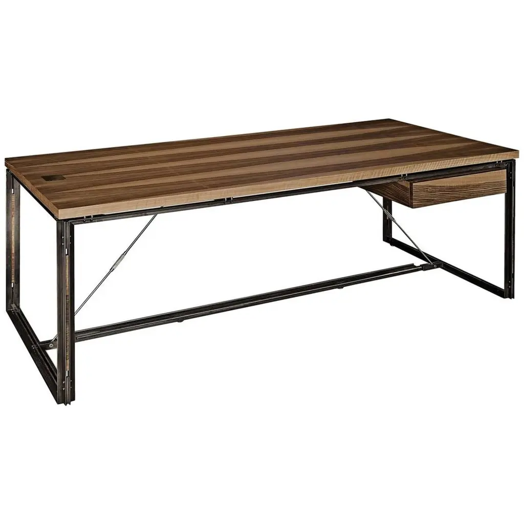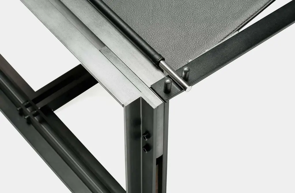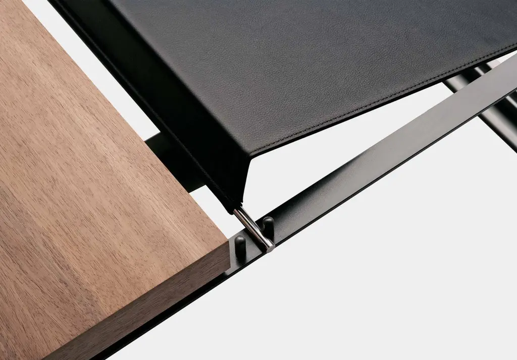 "Tecnica" is a hybrid piece of furniture between a table and a bench, designed by Jaume Tresserra and manufactured by Dessie', featuring a metallic structure in antique nickel finish, adjustable feet, top in walnut veneered plywood and an elegant magazine holder in black leather. Indoor use only. DIMENSIONS:D. 23.6", W. 98.4", H. 15.7"JAUME TRESSERRA, born in Barcelona in 1943, studied law. Later he became interested in jewellery design and decoration, studying at the Massana School in Barcelona. He also worked as a creative designer in the publicity field for some time. After completing this rather erratic formation, he finally began to project interiors and to design exclusive furniture for his clients.In 1987 he established Tresserra Design, his own firm, then presented his first furniture collection at the International Trade Fair in Valencia and was immediately given the prize for the Best Modern Design. Tresserra's designs stimulate everyone's fantasy and emotion just like a work of art. This is is why it's difficult to judge them according to standard parameters. It's above all the beauty of the shape, distinguished by a refined choice of materials and by an uncompromising workmanship, that leaves us speechless and overshadows costs.Tresserra's works, full of Mediterranean references, featuring a cosmopolitan attitude and being contaminated by explicit artistic intentions, are nonetheless filtered by Rationalism. Hence no surprise that many film directors have chosen pieces of furniture designed by Tresserra to create specific backgrounds and atmospheres. Tresserra's pieces of design have been part of the decoration in famous movies such as Batman by Tim Robbins (1989), A Kiss Before Dying by James Dearden (1992) and Damage by Louis Malle (1993).DESSIE' company's mission is putting a contemporary spin on the old tradition of cabinet-making, in order to offer pieces of furniture ready to get people excited and to satisfy aesthetic and functional values of the contemporary way of living. Dessie' was started during 1990s and now proposes a collection of pieces of furniture inviting to discover a sophisticated and elegant design, an unique style where different influences merge, and to re-create a simple and refined design atmosphere for unconventional people who are freely looking for essential and high quality pieces.A collection, including tables, small tables, writing desks, console tables, bedside tables, chairs, bookcases, dressers, cabinets, cupboards, upholstered pieces of furniture and lamps, which was created having in mind an essential style and a careful attention to recent trends. Harmony of forms and care for high quality and rational design, attentively studying any detail, are some of key features of production by Dessie', which has been always reworking the legacy from the tradition by means of a strongly contemporary design language.The aim is to create a forward-looking style which anyway doesn't lose the value of the past as a main feature, in order to give any setting an original charme, indifferent to passing fads. Hence here's a formal language which uninterruptedly takes care of details and precious finishes, while experimenting expressive capabilities of the best materials: precious woods, steel, leather, natural fibers, etc. Flexibility and possibility of customizing any piece in order to offer a "tailor-made" production is one of key design criteria followed by Dessie'.Dessie' established a close cooperation with some famous international designers, like the Catalan Jaime Tresserra, who designed "Tecnica" collection. Besides its own production, Dessie' has been taking the assignment of selecting products by some Spanish companies (Andreu World, Carpyen, Dae, Indecasa, Mobles 114, Punt Mobles and Tresserra) for many years, creating an unique and refined collection featuring bookcases, sofas, lamps, wall lights, chairs, armchairs, rugs, outdoor pieces of furniture, etc.