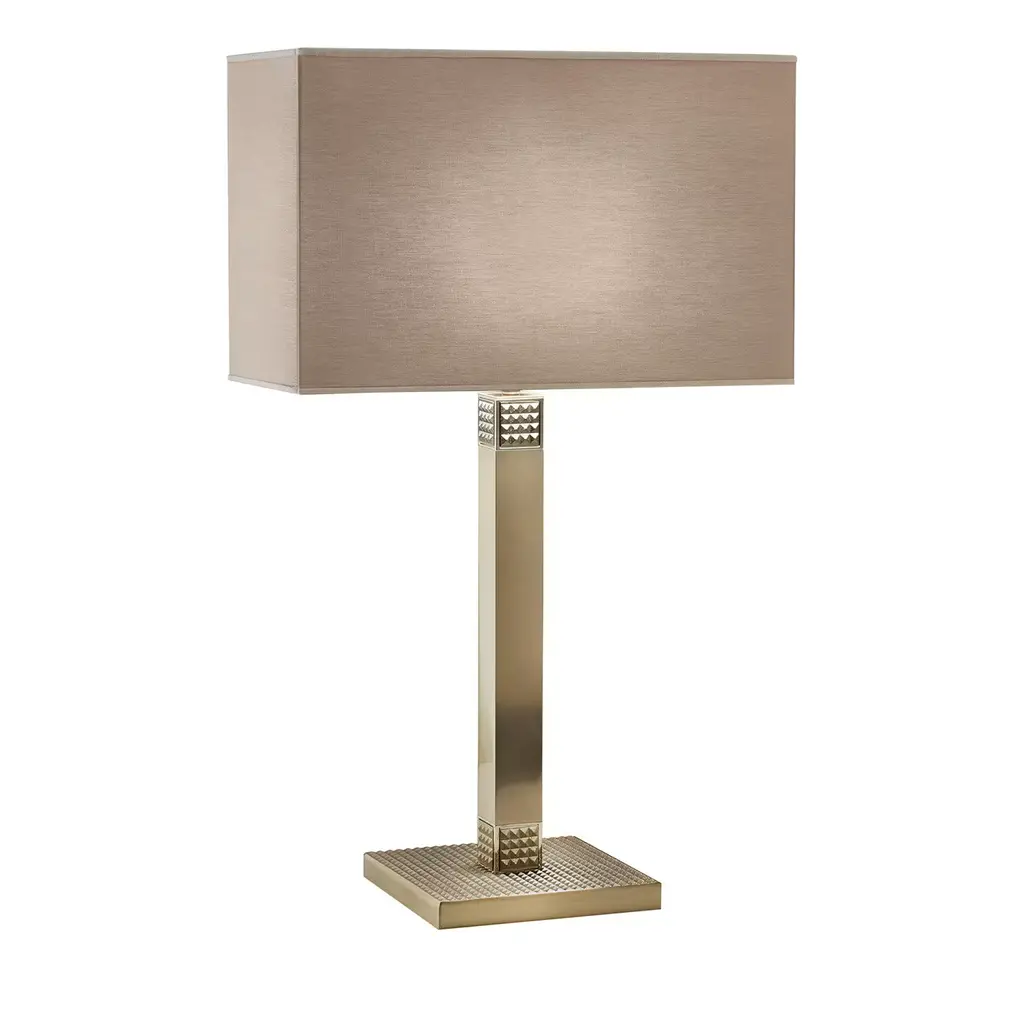 Tellus is a table lamp in brass and polished ebony finish. Decorative insert in Vetrite glass. Lampshade in fabric. Contemporary chromaticisms and regular lines. Refined and expressive, this table lamp evokes fine materials such as ebony, Vetrite glass and precious metals. A lamp that gives identity to the environment in which it is placed.