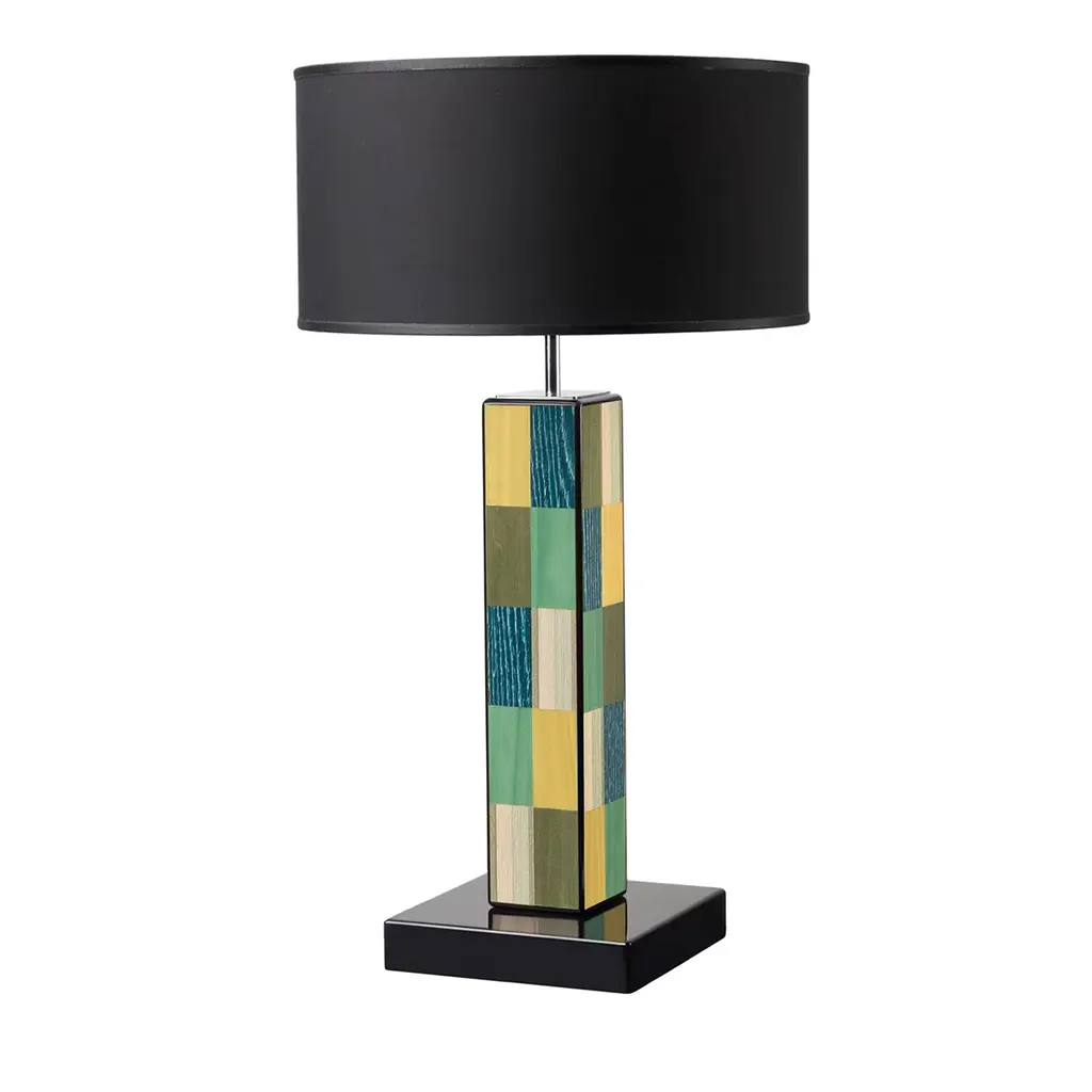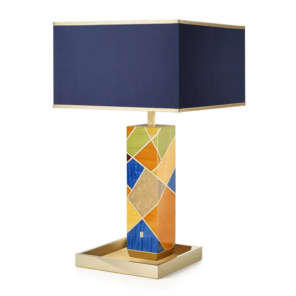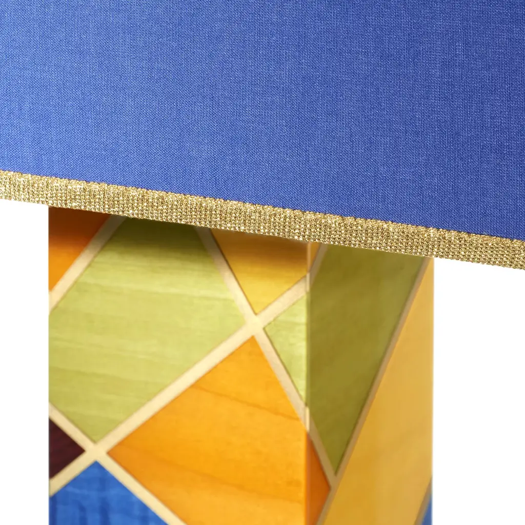 Tellux Sibilla Multicolor Wood Base With Blue Fabric Lampshade Table Lamp