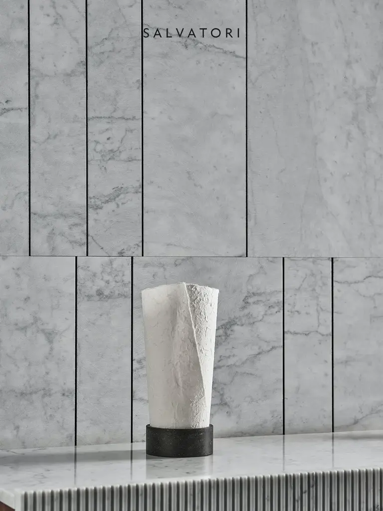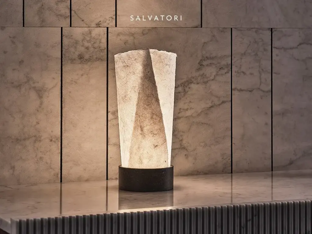 Teo is a table lamp designed by Luca Nichetto. Inspired by the works of the late great architect I.M. Pei, it comprises a circular base in Pietra d’Avola or Crema d’Orcia limestone into which a sheet of rice paper is inserted as an inverted funnel to form the shade and emit a beautiful soft glow. The lamp is charged with a USB cable and the intensity of the light it emits can be adjusted to create the perfect atmosphere.