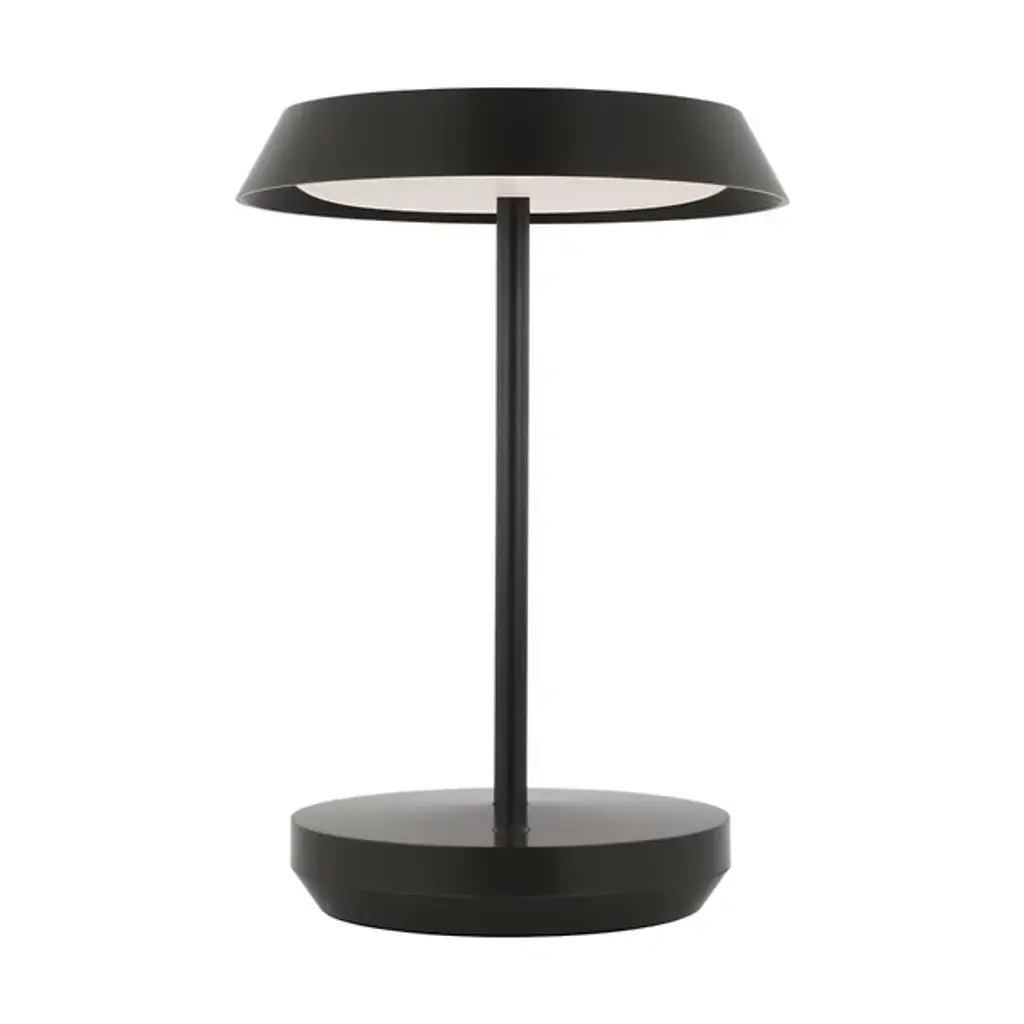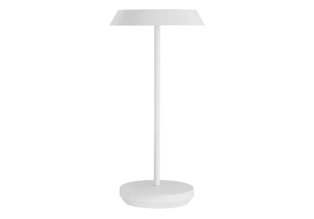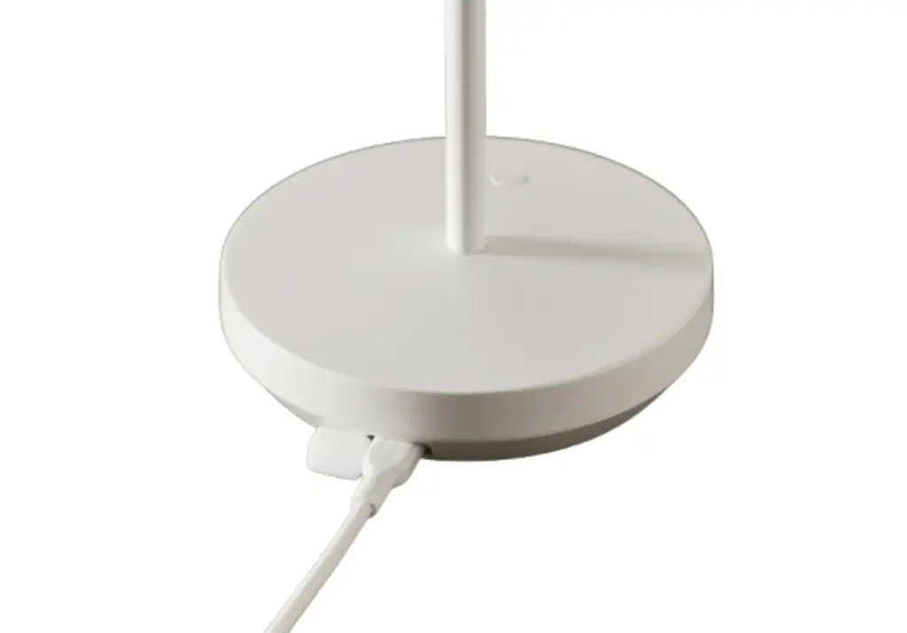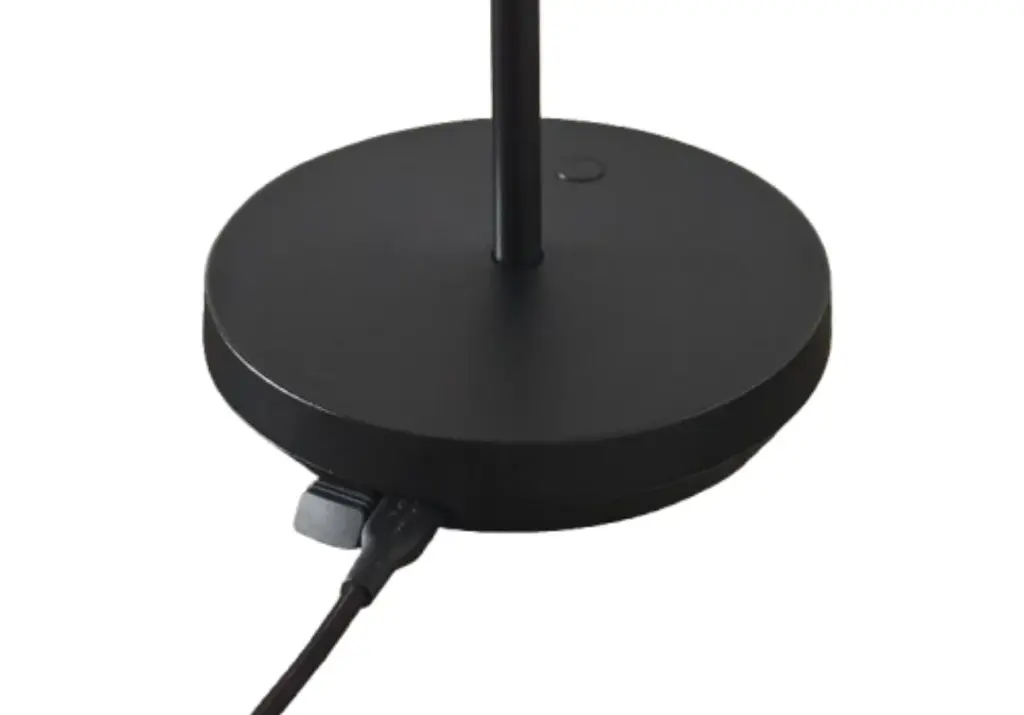 A slim, modern addition, this rechargeable lamp features a thin stem and circular shade and bass. Its three-way dimming light offers versatile options, styling well into offices, bedrooms, desks, and countertops.