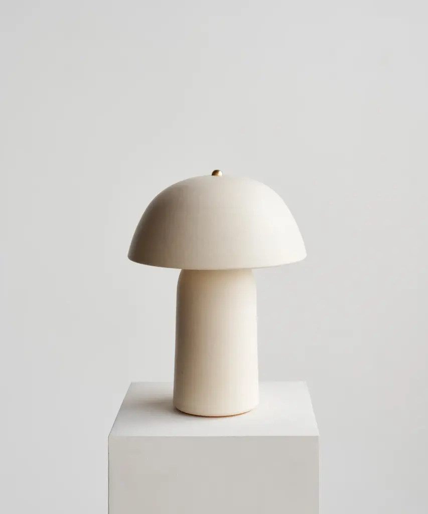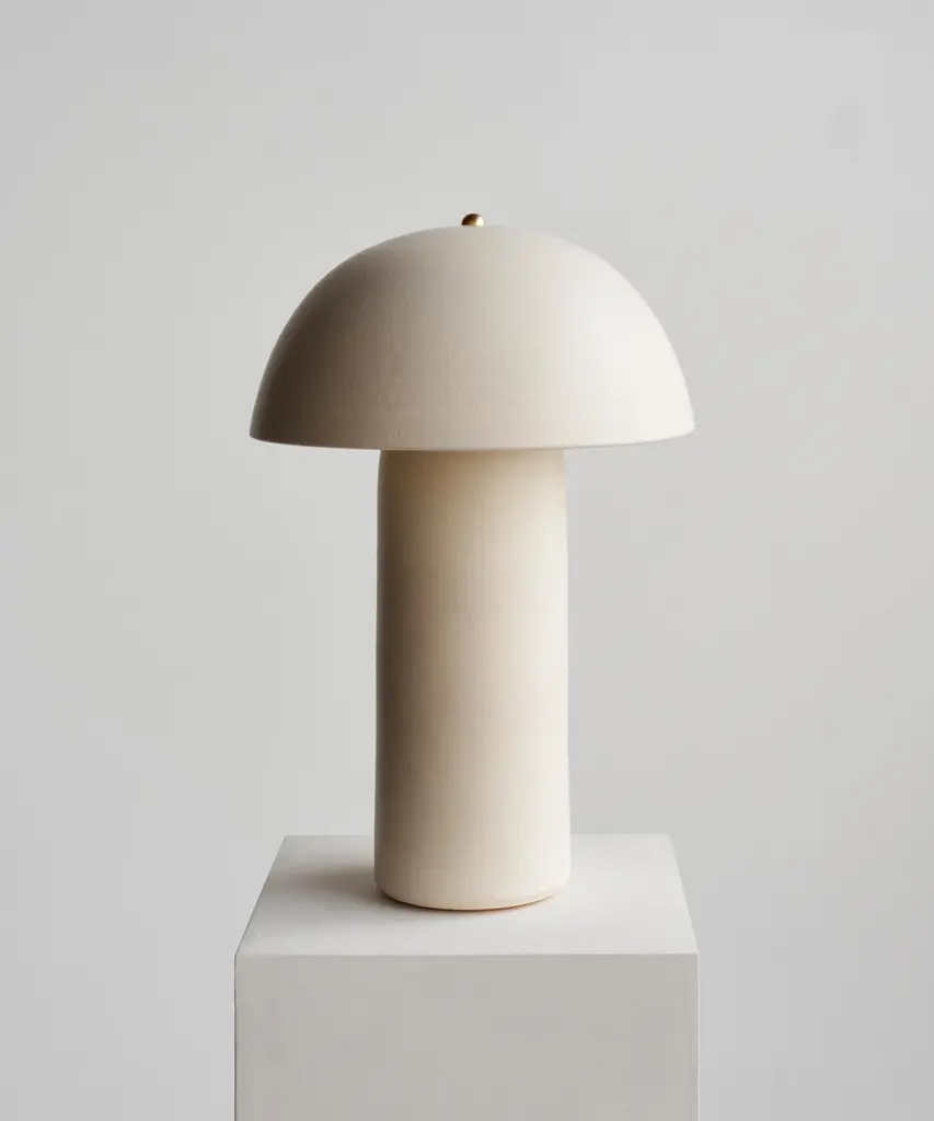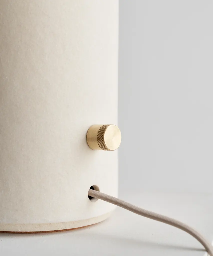 The Tera Lamp is a staple in the Ceramicah collection.Each Tera Lamp is made of a wheel-thrown ceramic shade and ceramic base, brass hardware, a dimming switch, and LED light bulbs. Ceramicah is a Los Angeles ceramics studio by Micah Blyckert and Alexandra Cadiz. Both former Architects, the pair is influenced by their love of organic forms and textures, as well as the landscape of California.