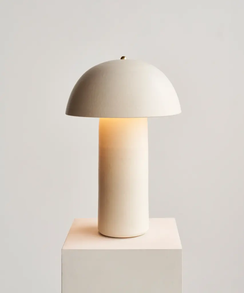 The Tera Lamp is a staple in the Ceramicah collection.Each Tera Lamp is made of a wheel-thrown ceramic shade and ceramic base, brass hardware, a dimming switch, and LED light bulbs. Ceramicah is a Los Angeles ceramics studio by Micah Blyckert and Alexandra Cadiz. Both former Architects, the pair is influenced by their love of organic forms and textures, as well as the landscape of California.
