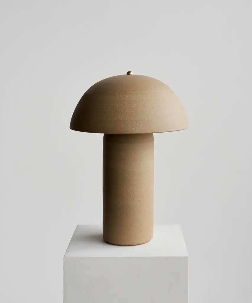 The Tera Lamp is a staple in the Ceramicah collection.Each Tera Lamp is made of a wheel-thrown ceramic shade and ceramic base, brass hardware, a dimming switch, and LED light bulbs. Ceramicah is a Los Angeles ceramics studio by Micah Blyckert and Alexandra Cadiz. Both former Architects, the pair is influenced by their love of organic forms and textures, as well as the landscape of California.