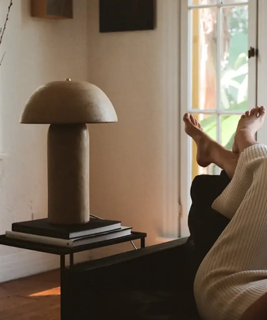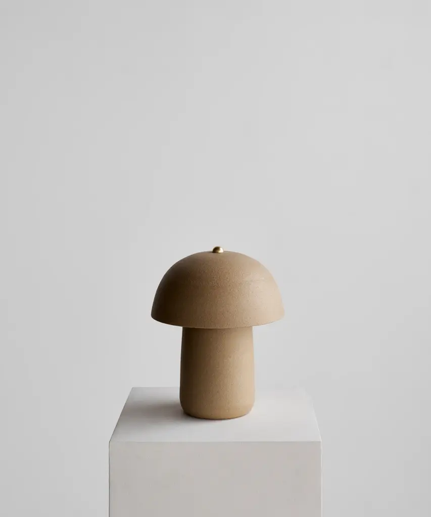The Tera Lamp is a staple in the Ceramicah collection.Each Tera Lamp is made of a wheel-thrown ceramic shade and ceramic base, brass hardware, a dimming switch, and LED light bulbs. Ceramicah is a Los Angeles ceramics studio by Micah Blyckert and Alexandra Cadiz. Both former Architects, the pair is influenced by their love of organic forms and textures, as well as the landscape of California.