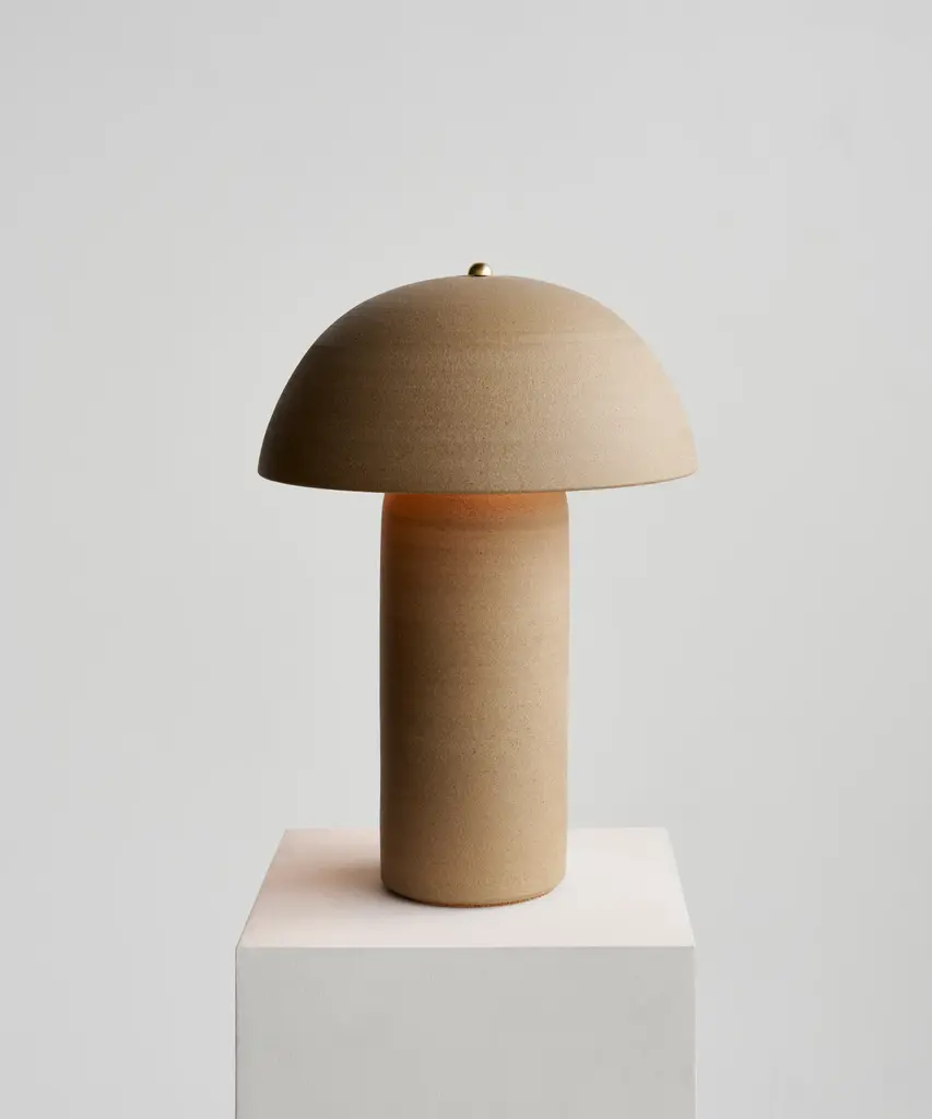 The Tera Lamp is a staple in the Ceramicah collection.Each Tera Lamp is made of a wheel-thrown ceramic shade and ceramic base, brass hardware, a dimming switch, and LED light bulbs. Ceramicah is a Los Angeles ceramics studio by Micah Blyckert and Alexandra Cadiz. Both former Architects, the pair is influenced by their love of organic forms and textures, as well as the landscape of California.