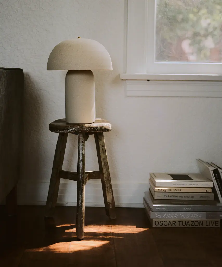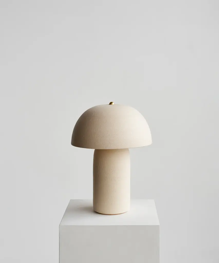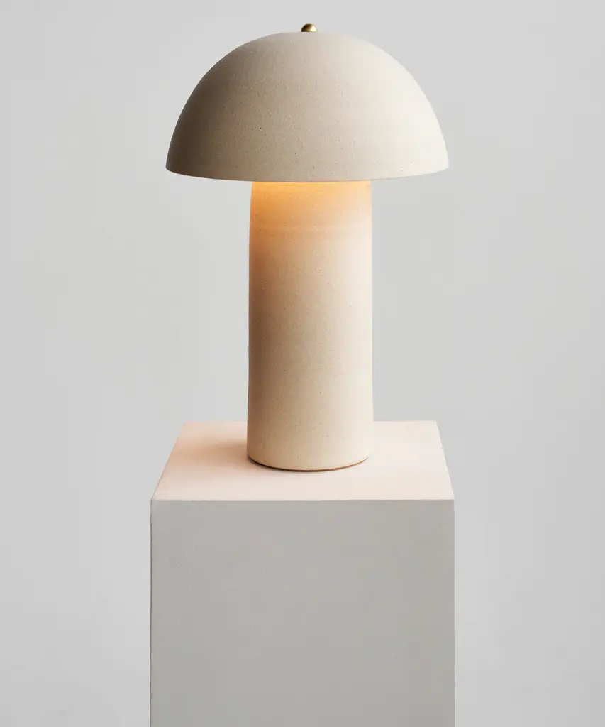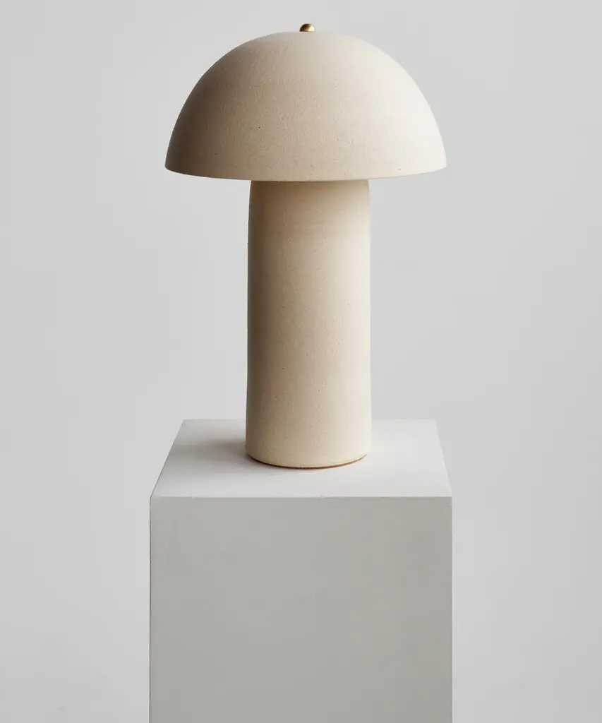 The Tera Lamp is a staple in the Ceramicah collection. Each Tera Lamp is made of a wheel-thrown ceramic shade and ceramic base, brass hardware, a dimming switch, and LED light bulbs. Ceramicah is a Los Angeles ceramics studio by Micah Blyckert and Alexandra Cadiz. Both former Architects, the pair is influenced by their love of organic forms and textures, as well as the landscape of California.