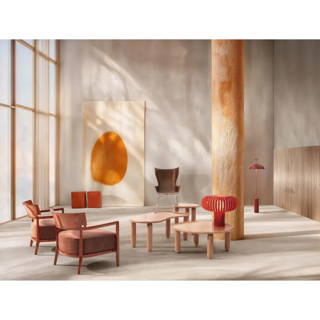 Kartell’s Teresa table lamp captivates with its soft, flowing curves that resemble unfolding petals or the delicate gills of a mushroom. While inspired by nature, this glossy, minimalist table lamp also reflects the heritage of industrial design and technical experimentation. Designed by Ferruccio Laviani, the dimmable Teresa lamp emits a gently diffused light, creating a warm and inviting atmosphere – perfect for a living room table or bedside. Made from recycled acrylic, the lamp is available in a versatile range of colors, making it easy to find the perfect match for any interior.