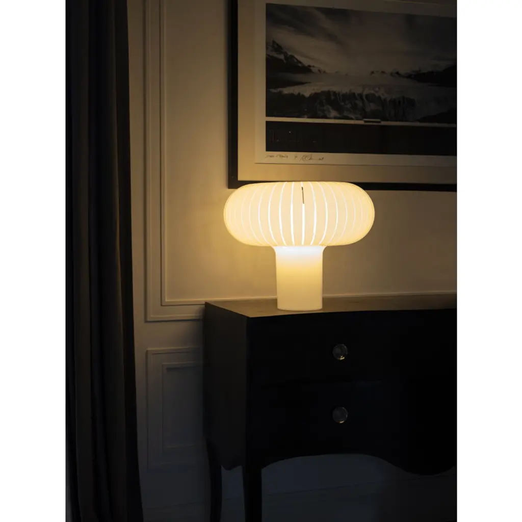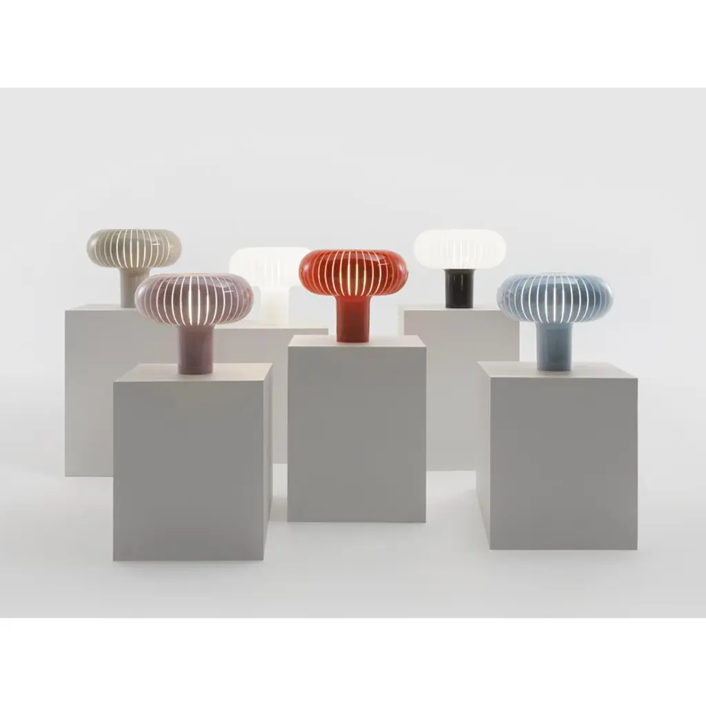 Kartell’s Teresa table lamp captivates with its soft, flowing curves that resemble unfolding petals or the delicate gills of a mushroom. While inspired by nature, this glossy, minimalist table lamp also reflects the heritage of industrial design and technical experimentation. Designed by Ferruccio Laviani, the dimmable Teresa lamp emits a gently diffused light, creating a warm and inviting atmosphere – perfect for a living room table or bedside. Made from recycled acrylic, the lamp is available in a versatile range of colors, making it easy to find the perfect match for any interior.