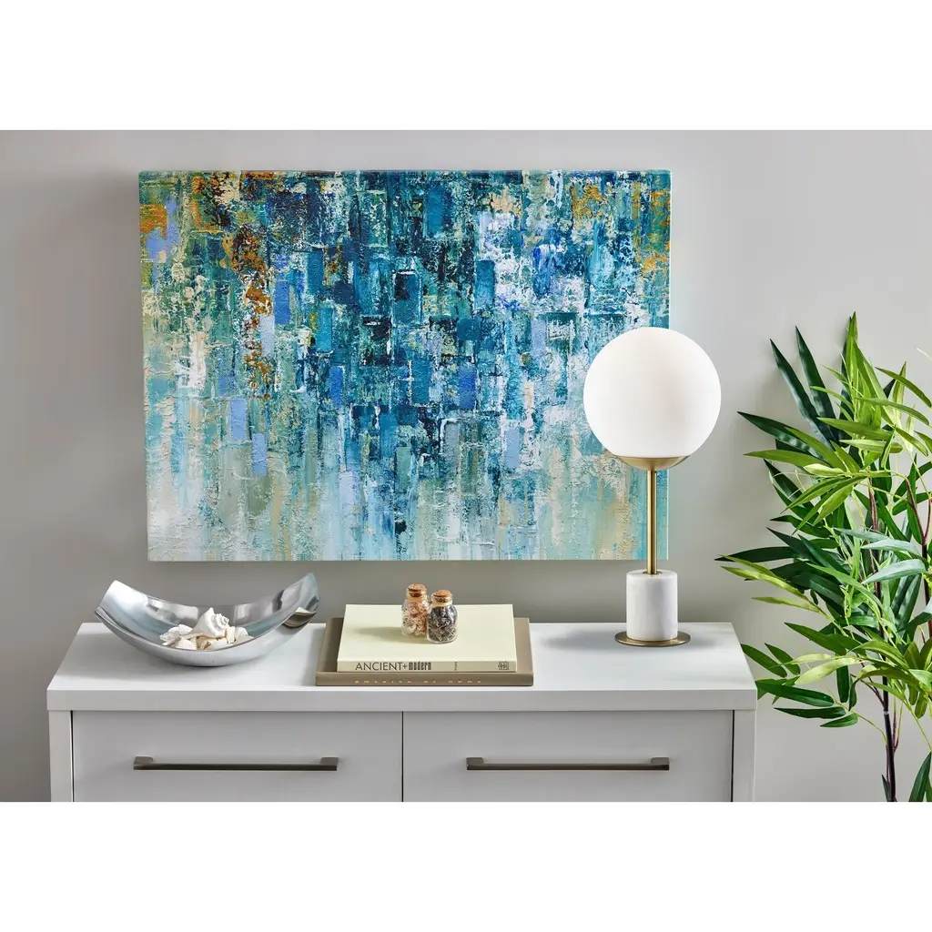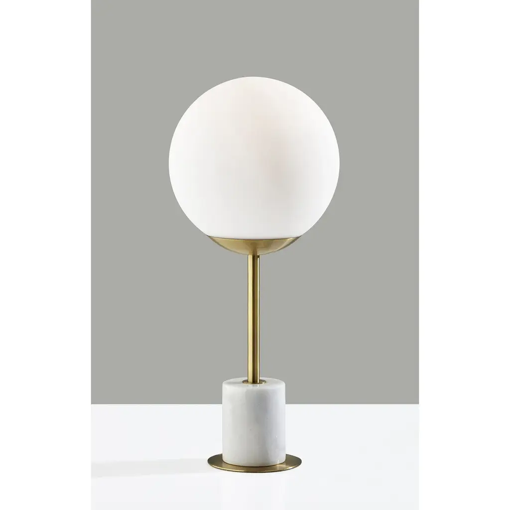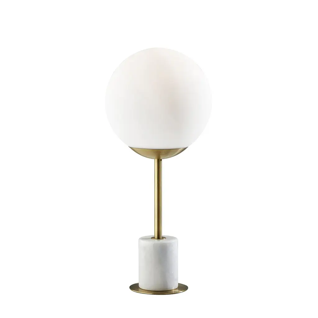 Introducing the 2157-21 Terra Table Lamp, an exquisite and timeless lighting piece that marries vintage charm with modern elegance. This table lamp features an antique brass finish that complements its chunky white marble base, exuding sophistication, and character. The centerpiece of this lamp is its white matte glass globe-shaped shade, offering a soft and inviting glow. Standing at a height of 19 inches, the Terra Table Lamp is a versatile addition that enhances any living space. Designed for simplicity, this lamp is equipped with an on/off in-line switch, providing convenient control over the lighting. The Terra Table Lamp effortlessly fuses form and function, making it the perfect choice to illuminate and elevate your interior décor. Timeless Elegance: The 2157-21 Terra Table Lamp features an antique brass finish and a chunky white marble base, combining vintage charm with modern aesthetics. Inviting Shade: The lamp showcases a white matte glass globe-shaped shade that emits a soft and inviting glow, creating a warm and welcoming ambiance. Compact Height: Standing at 19 inches, this table lamp is suitable for various settings, from bedside tables to accent pieces, providing both style and illumination. In-Line Switch: The Terra Table Lamp includes an on/off in-line switch for easy and convenient control over the lighting, making it effortless to set the mood. Classic and Functional: Elevate your living space with the Terra Table Lamp, where timeless elegance meets practicality, enhancing your interior decor with a touch of vintage charm and a warm, diffused glow.