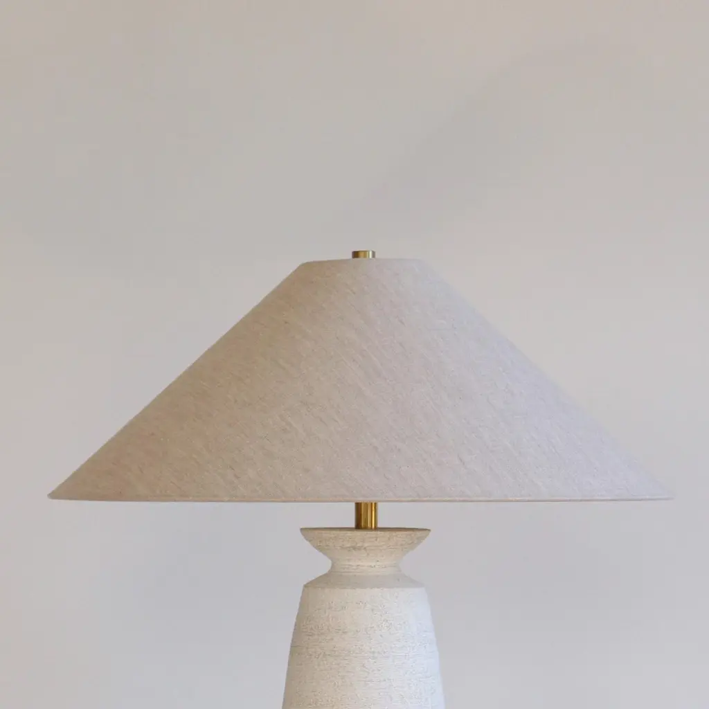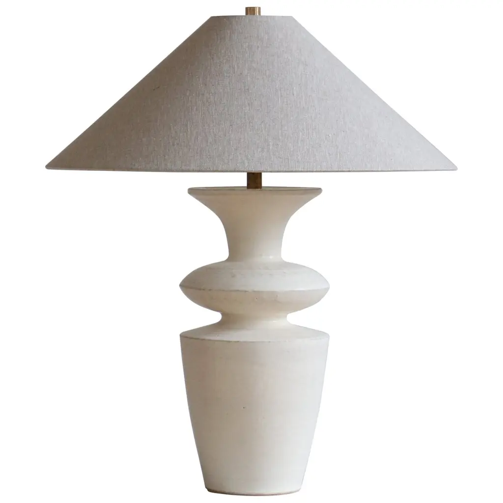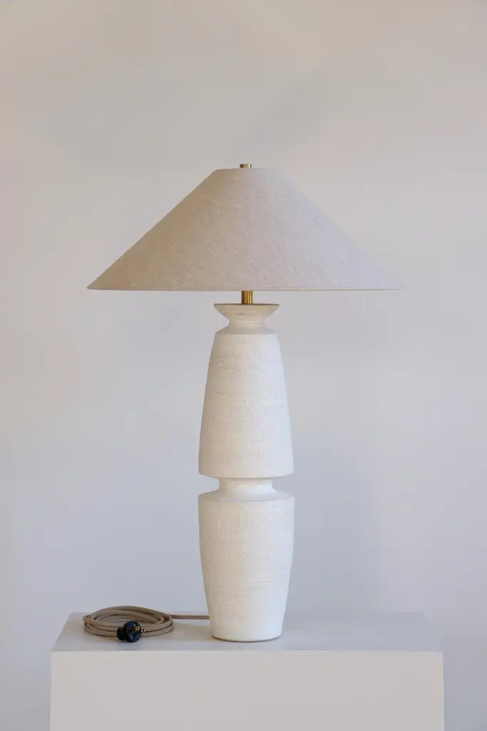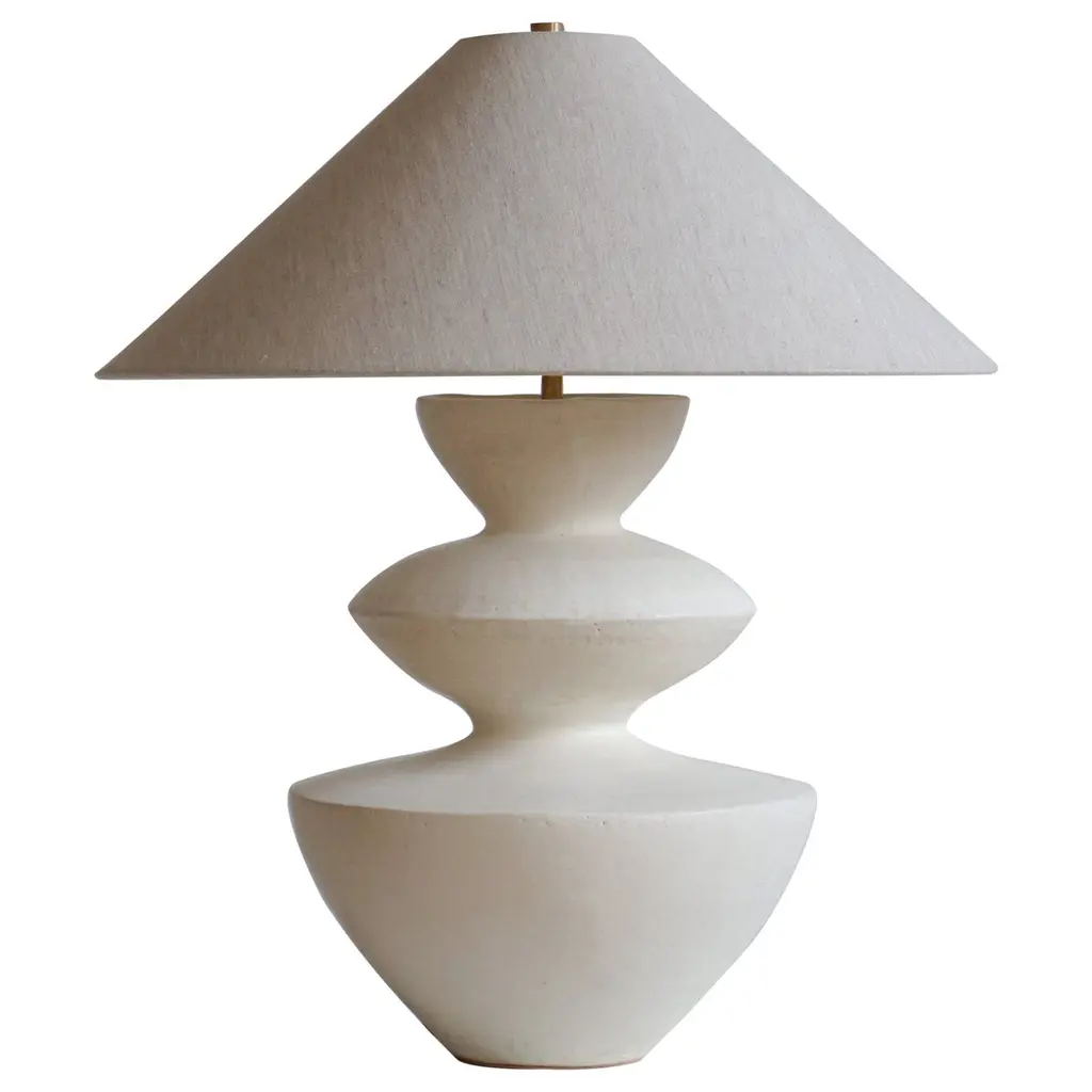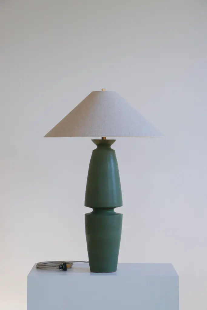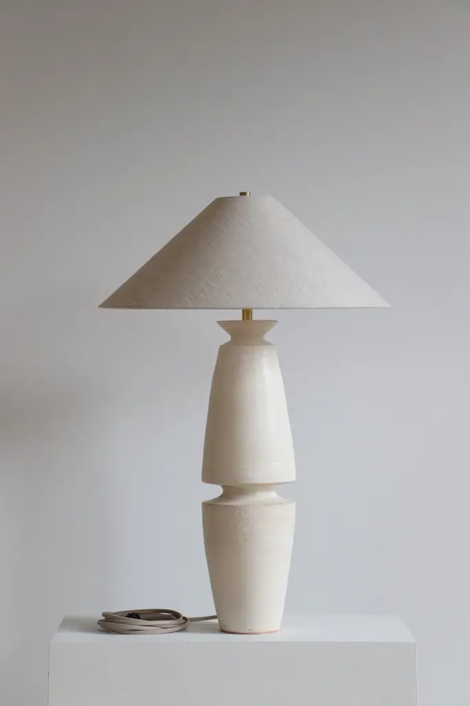 Terrasig Serena Table Lamp by Danny Kaplan StudioDimensions: ⌀ 51 x H 71 cmMaterials: Glazed Ceramic, Unfinished Brass, LinenThis item is handmade, and may exhibit variability within the same piece. We do our best to maintain a consistent product, but honor the handmade craftsmanship. Dimensions may vary within an inch.UL Certification available upon request.All our lamps can be wired according to each country. If sold to the USA it will be wired for the USA for instance.Danny Kaplan Studio is a ceramic studio based in Brooklyn focused on lighting and sculptural furniture. Everything is handmade to order.