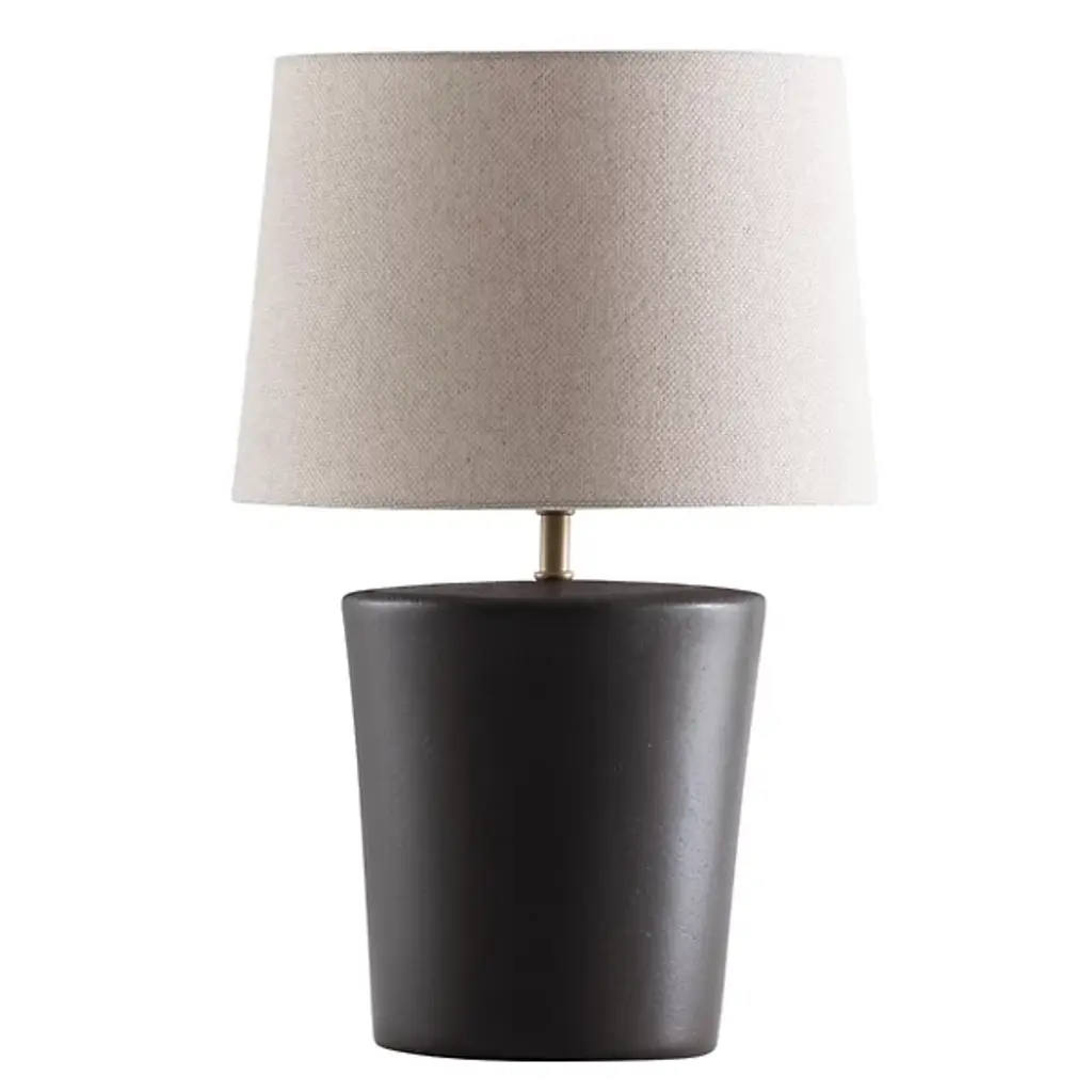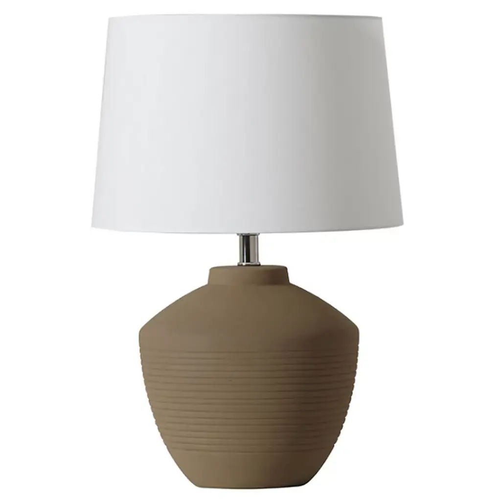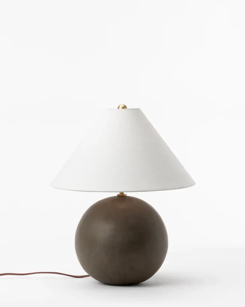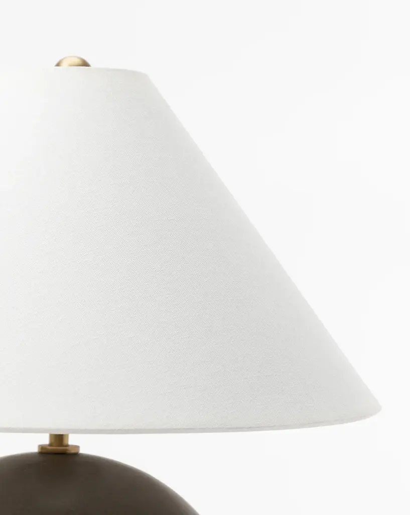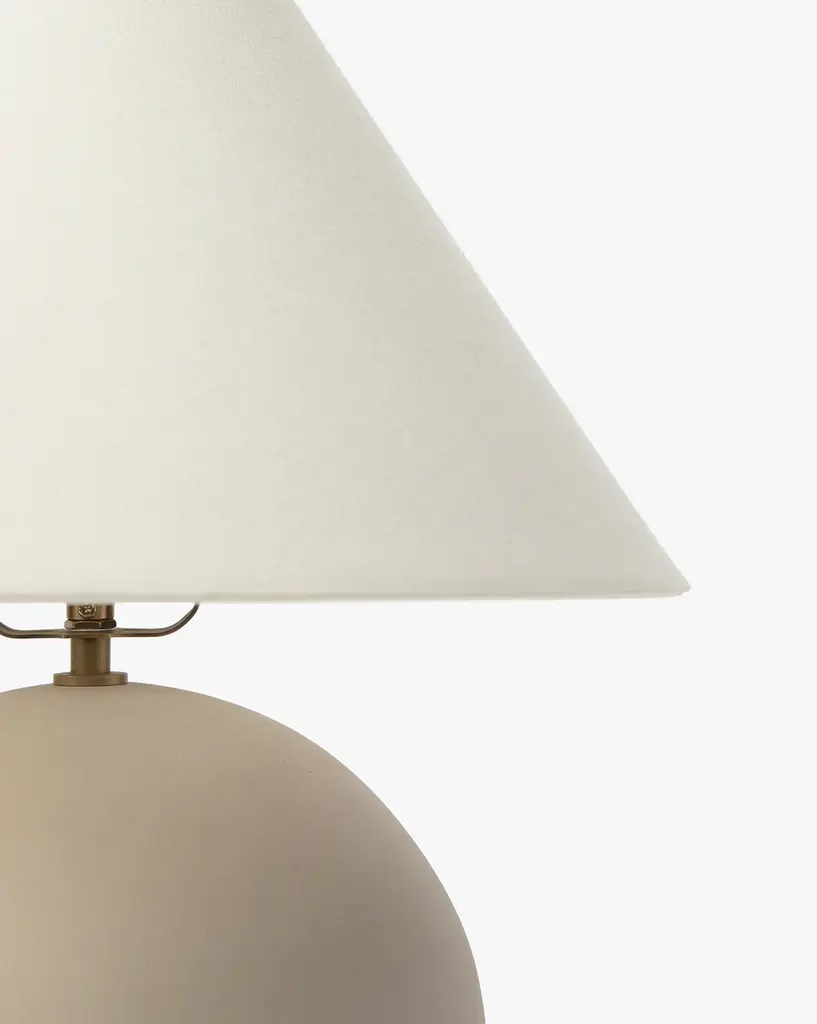 Merging geometry with traditional lamp design, we meticulously designed the Tess Ceramic Table Lamp. Earthenware was an obvious material choice its natural texture and soft feel give way for a beautiful sand or brown finish that is rich and contrasting. With a deeply tapered shade that merges with its spherical ceramic base, the table lamp is balanced and interesting.