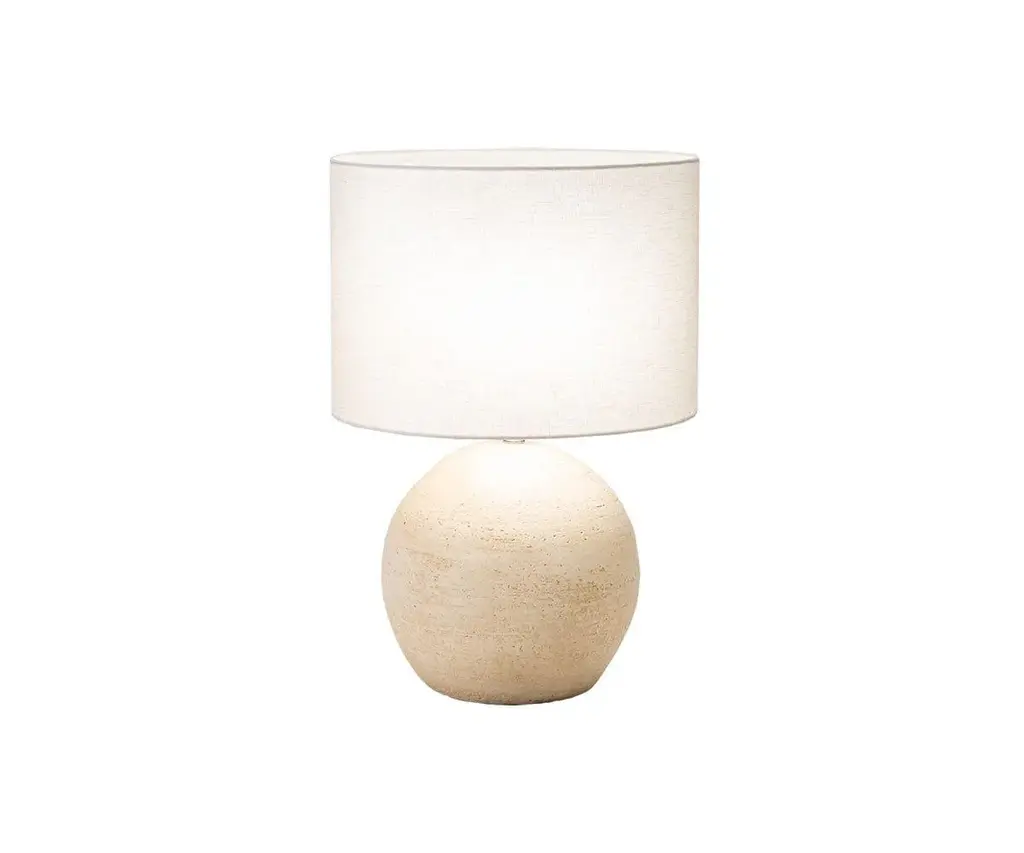 The Textured Clay Lamp features a pleasingly plump ball-shaped base in weathered terracotta. This rough white texture lends itself to any modern space, and can be styled with contemporary decor or as part of a rustic setting. Complete with a fabric lampshade, this classic table lamp stands ready to make your room feel lighter, brighter and warmer.