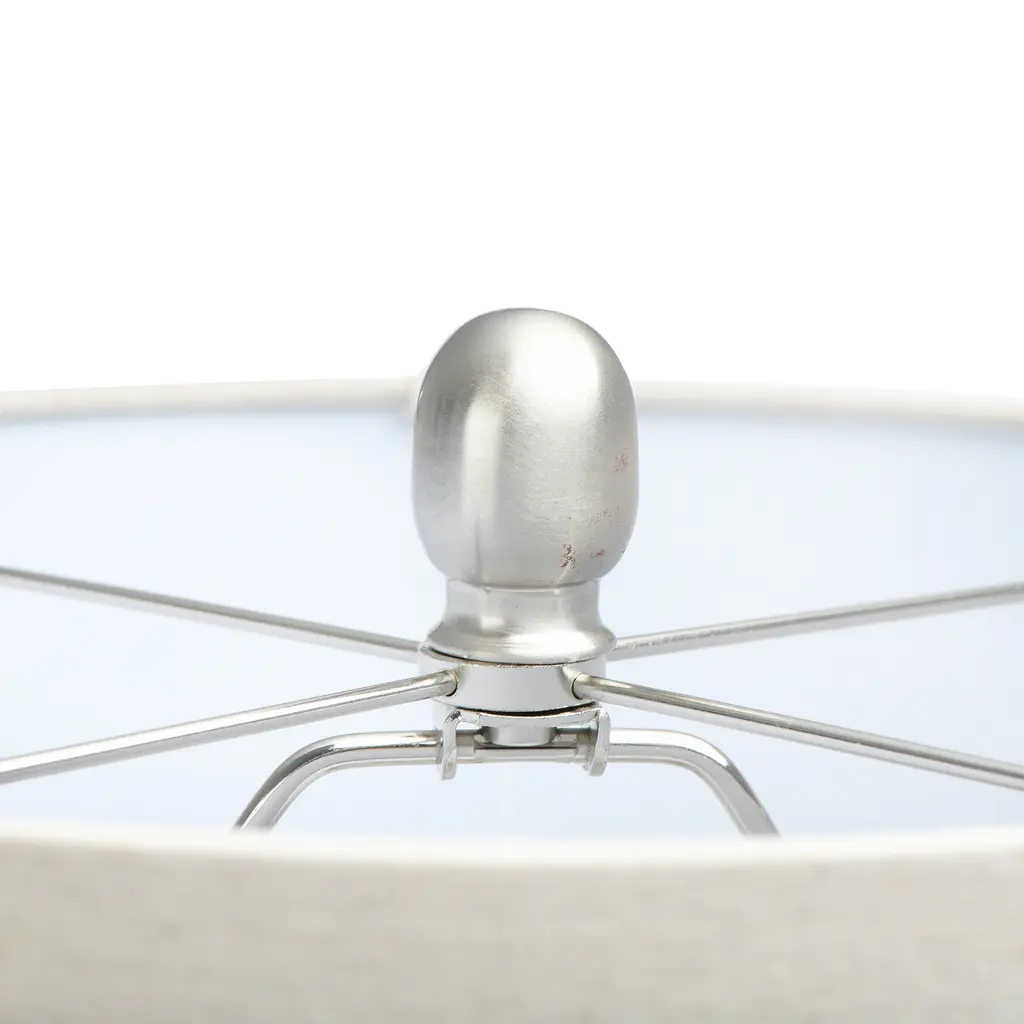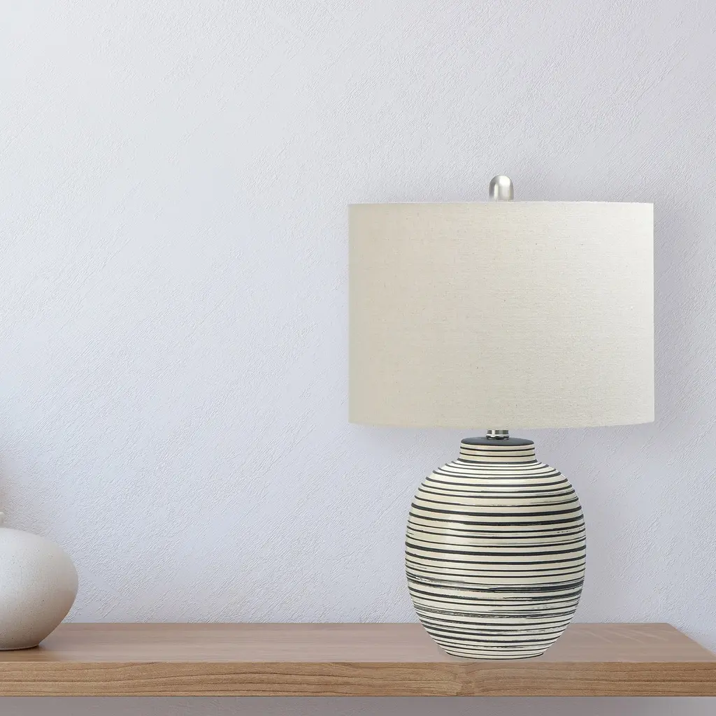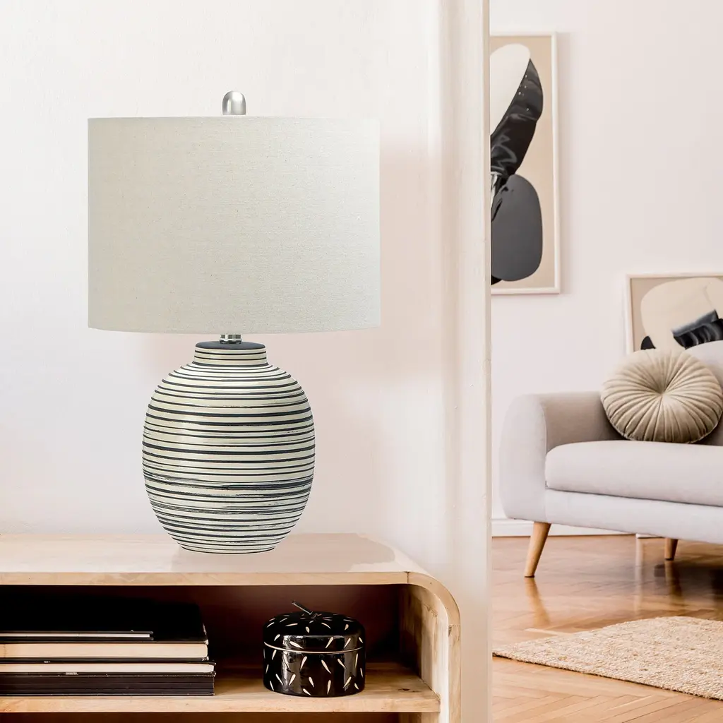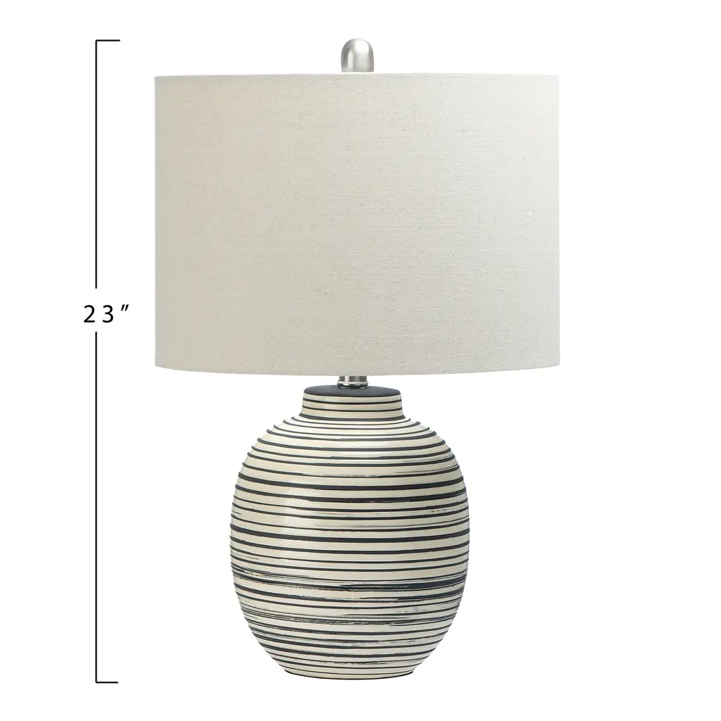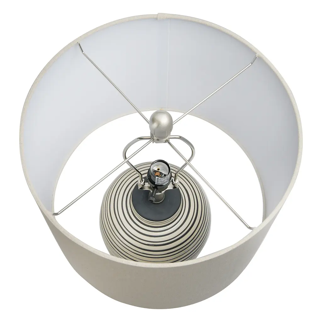 Textured Stripe Stoneware Table Lamp With Chrome Accents - Grey And Cream