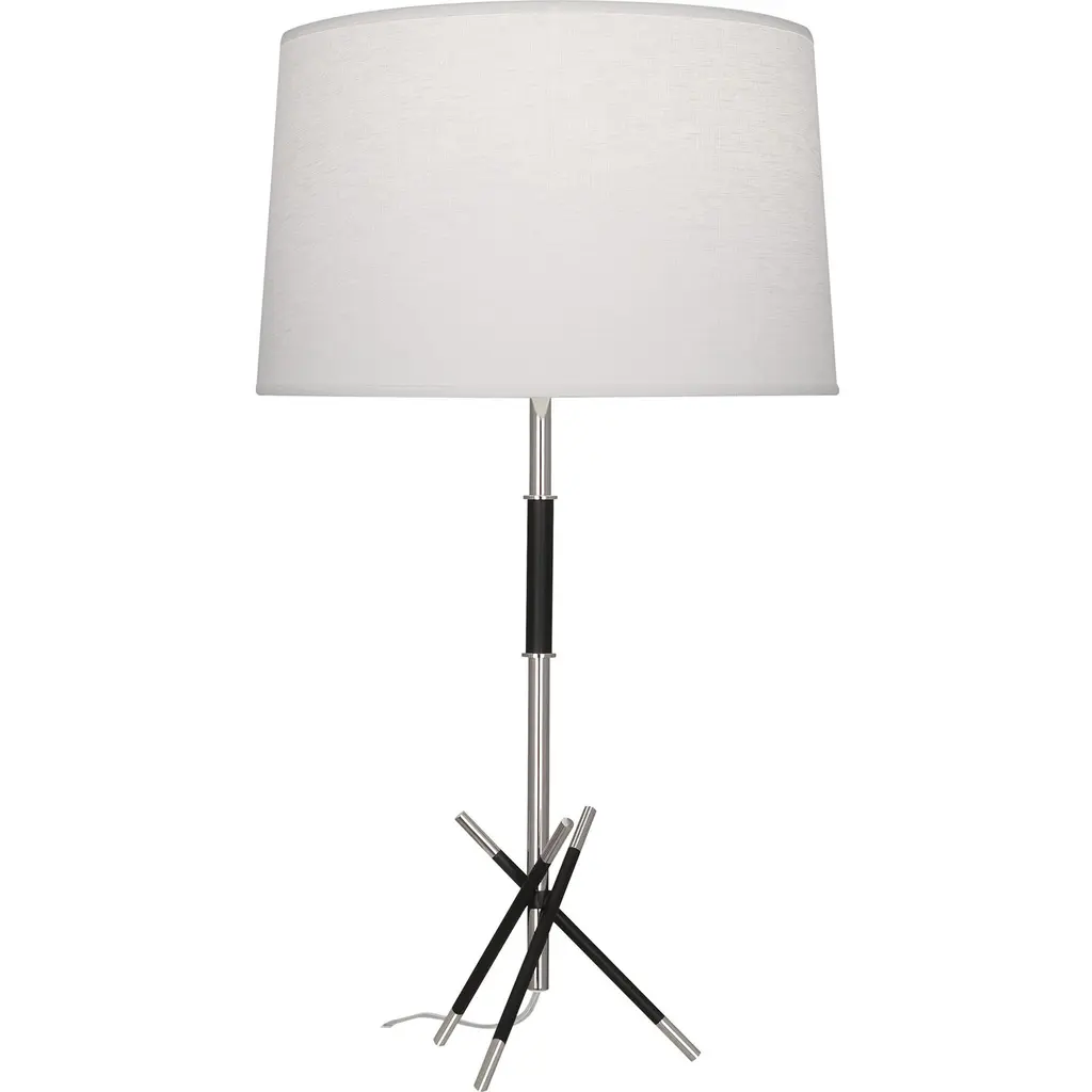 A crossed leg design defines the Thatcher collection while matte black and polished metal accents add to its sleek, modern appeal.