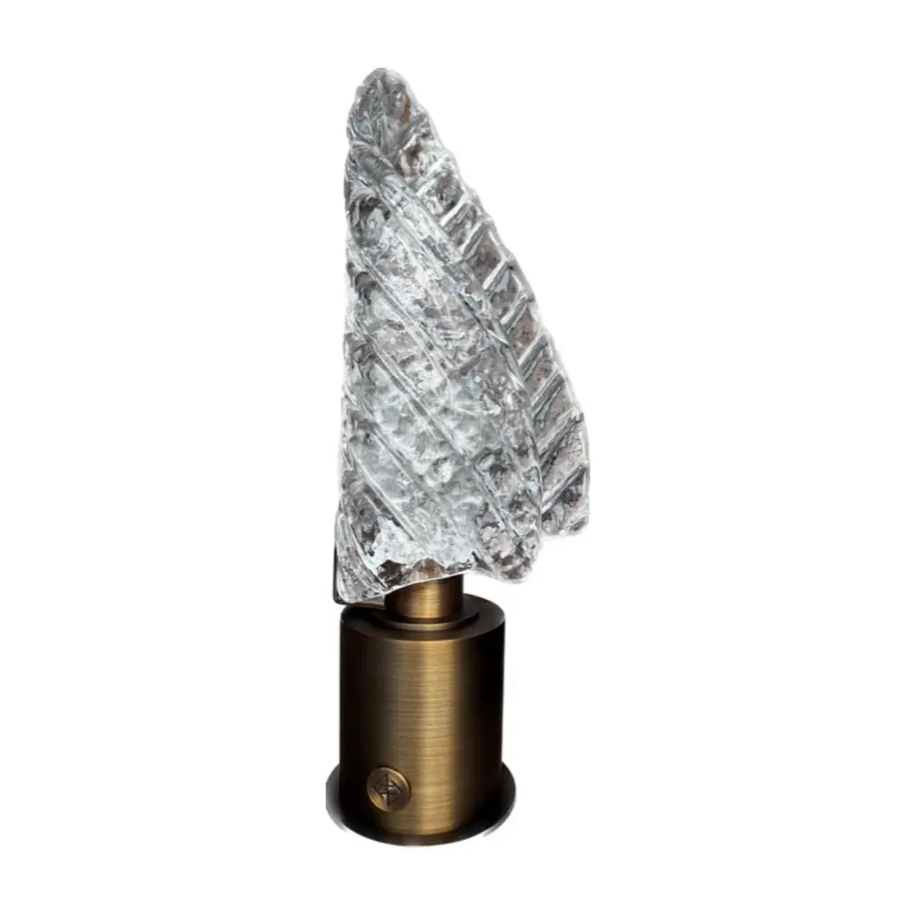 a sculptural portable lamp that captures the meandering profile of cascading landscape. the piece is highlighted with its hand-folded caste glass and a distinct form.Larger quantities are available upon request, with 8 weeks of production.