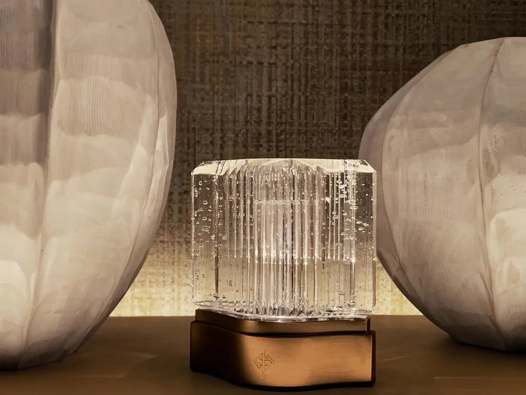 The Crystal Brick Portable Led Lamp In Glass And Bronze By André Fu Living