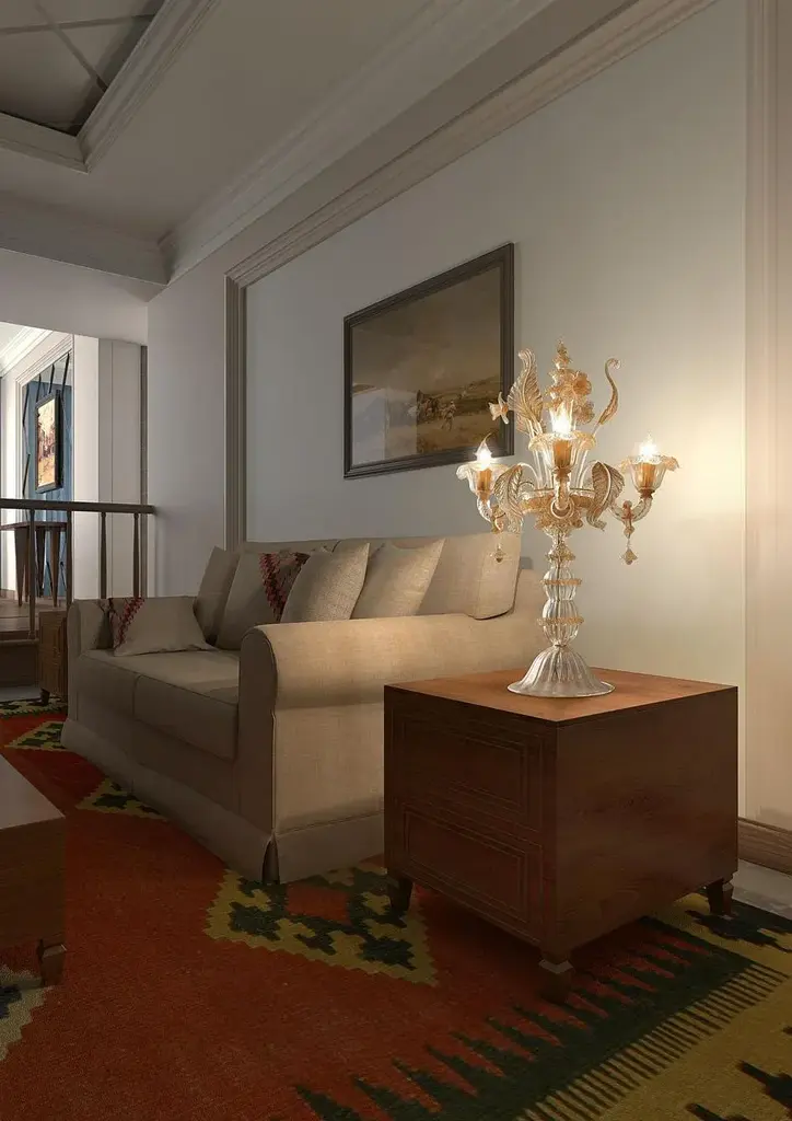 Jump back to Paris in the XVIII century and you find a fantastic lamp made by a man who was holding artistry and character. this table lamp has been made in a fantastic venetian crystal with 24 K gold . this chandelier has been choose from the heart by my self and very difficult to reproduce. perfect in a living room or i the lounge of a glamorous Hotel. dimensions : height 75 cm diameter : 45 cm 12 x E14 3 x e14 Signed by Maker