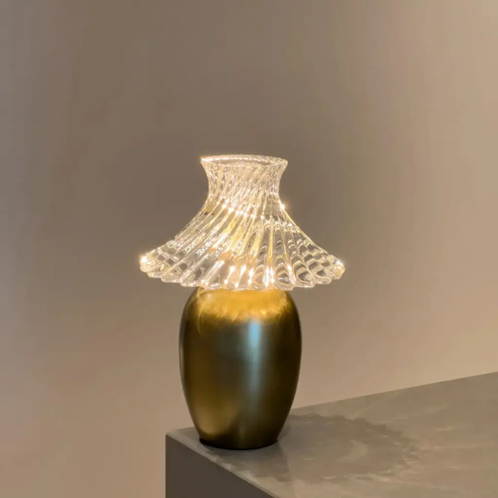 the twilight portable led lamp captures the mystical allure of twilight, where day meets night in a breathtaking display. with its elegantly designed form and soothing led glow, this portable lamp brings a touch of enchantment to any space, creating a serene ambiance that invites relaxation and introspection.Portable Wireless Charging Table Lamp LED with Crystal Glass,Description: Portable USB table lamp LED, rechargeableLarger quantities are available upon request, with 8 weeks of production.