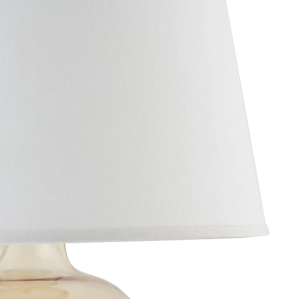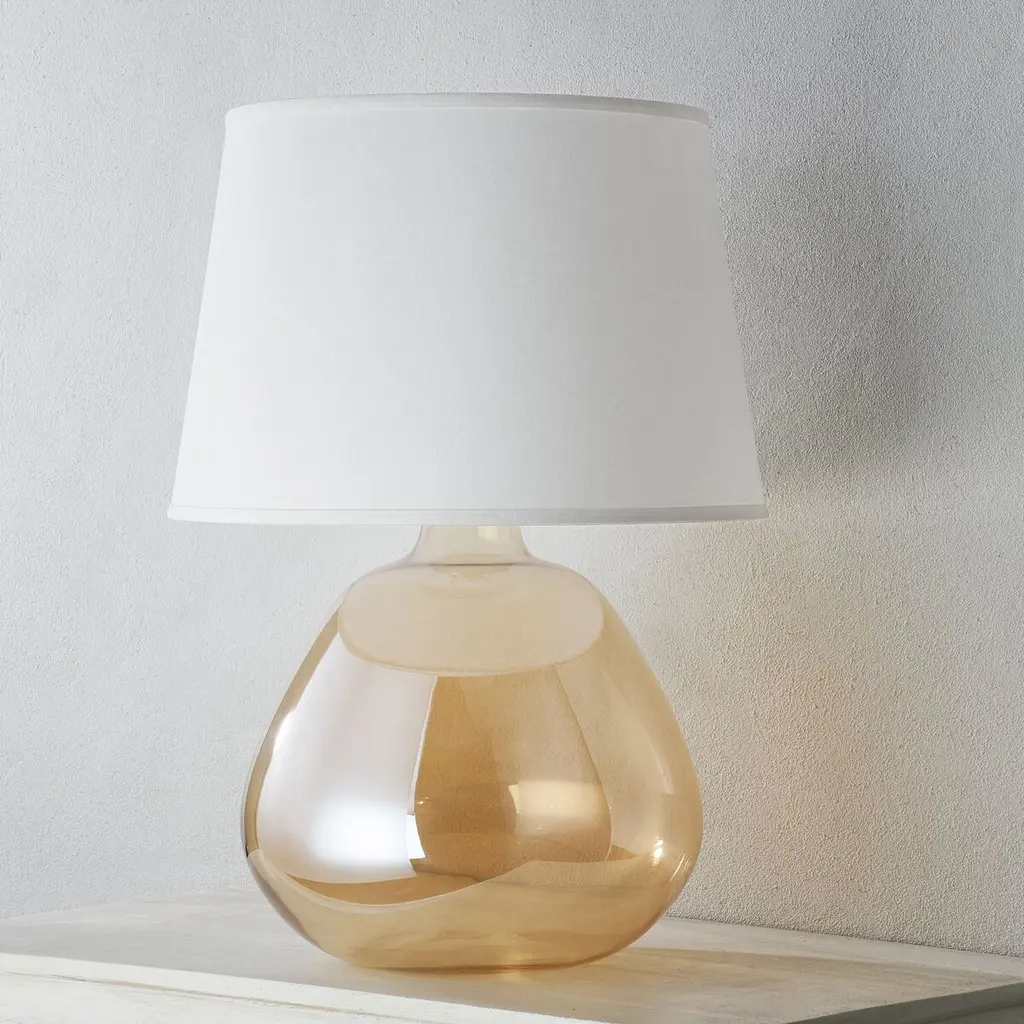 The luster of this table lamp's champagne-color glass body accentuates it swooping curves, making it a focal point even when the lamp is off. The Belgian linen shade heightens the refinement.