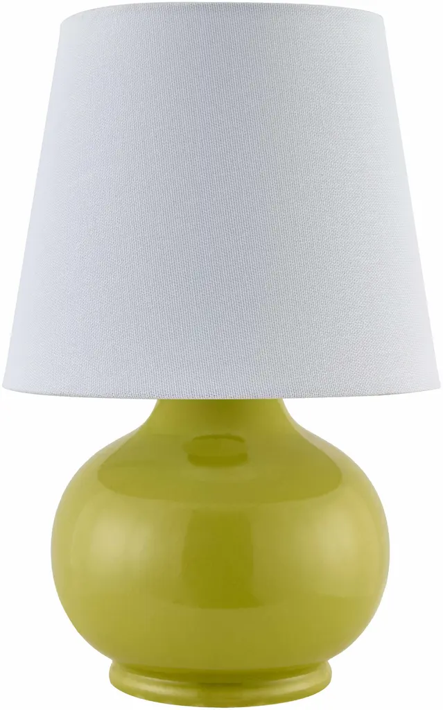 Collection: Theisseil Colors: Green, White, Translucent Material: Body: Ceramic / Shade (Outside): Cotton / Shade (Inside): Polyurethane Styles: Transitional,Traditional Made In: China Lighting Type: Accent Table Lighting Shade Material: Cotton, Polyurethane Shade Color: White, White Cord Length: 6' Switch Type: Rocker Number of Bulbs: 1 Socket Type: E-26 Bulb Wattage: 40W