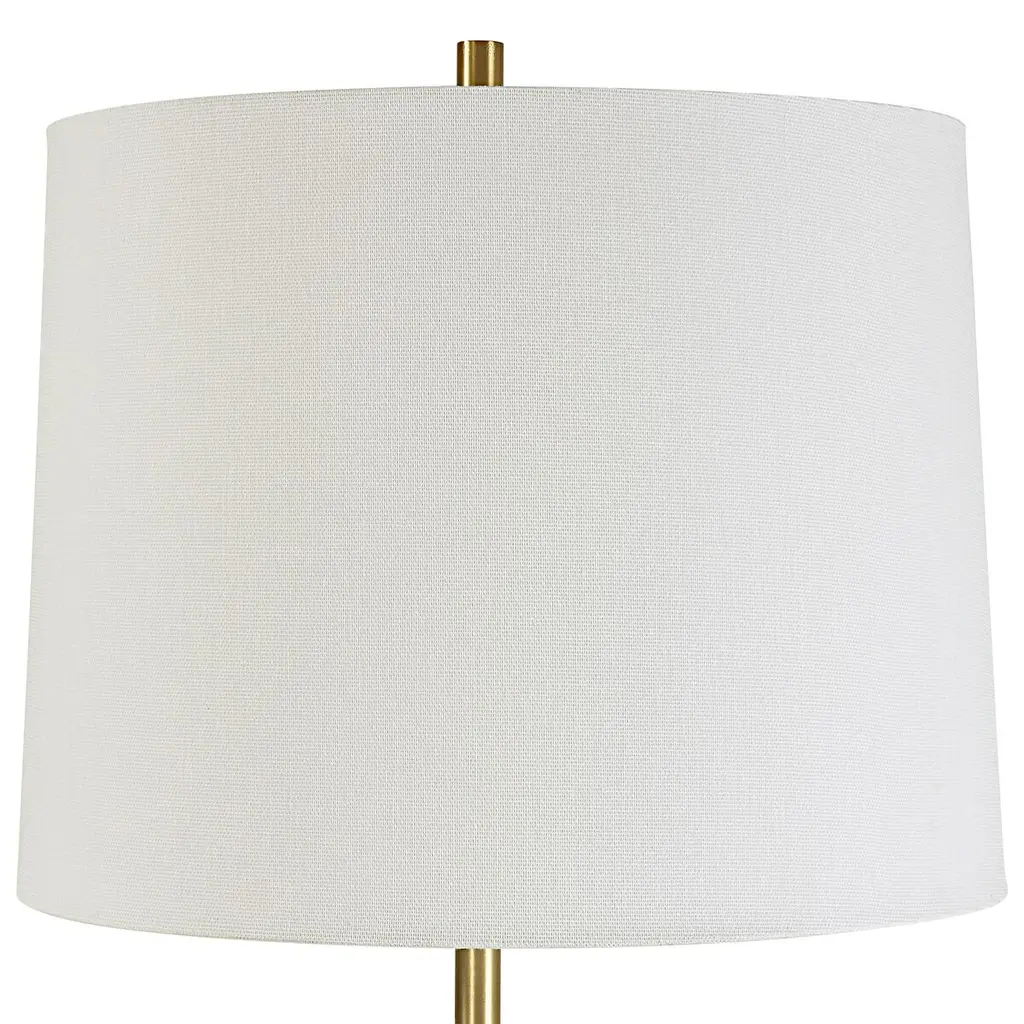 Illuminate your space with the exquisite Thiago Buffet Lamp, a testament to timeless elegance and artisanal craftsmanship. This lamp features a beautifully mottled aged glaze, exuding a subtle yet captivating charm. The delicate interplay of colors is complemented by antiqued brass plated accents, adding a touch of sophistication. Topped with a tapered round shade crafted from casual white linen, it offers a soft, inviting glow. Each piece is uniquely finished, showcasing the natural variations inherent in ceramic artistry. elevate your decor with this stunning blend of style and functionality.