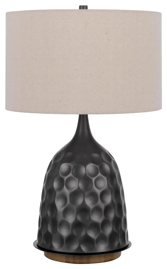 Masterfully carved of mango wood, this attractive, uncomplicated table lamp was inspired by the beads on ancient counting devices. The rich black finish on the wood base is slightly textured and semi sheer, revealing the beauty of the sustainable hardwood beneath. Each is topped with a tapered shade in creamy linen and a coordinating wood finial. Also available in Bleached Wood.16" dia x 29.5"H. Weighs 9 lbs.Hand Finished Mango Wood. Off White Linen Fabric ShadeUL listed. Uses one max 60W Type A bulb (not included). 3 way socket switch.Heirloom Quality - Expertly hand crafted and hand finished. Due to the hand crafted nature of this piece, each piece may have subtle differences.