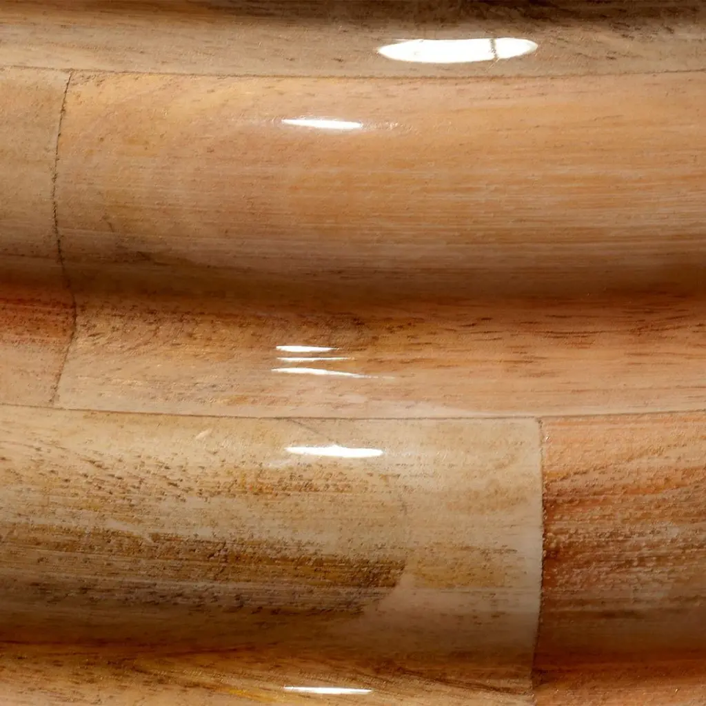 Thick Ribbed Lacquered Wood Fat Round Table Lamp 22 In Natural Bleached Carved
