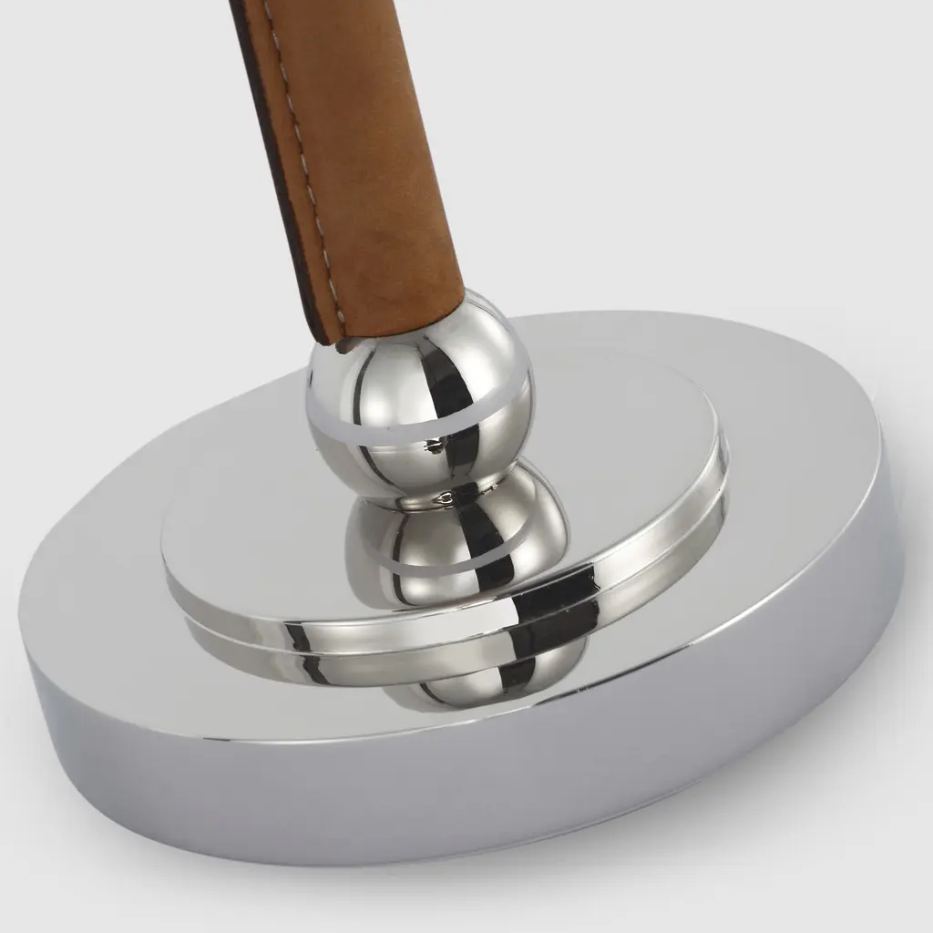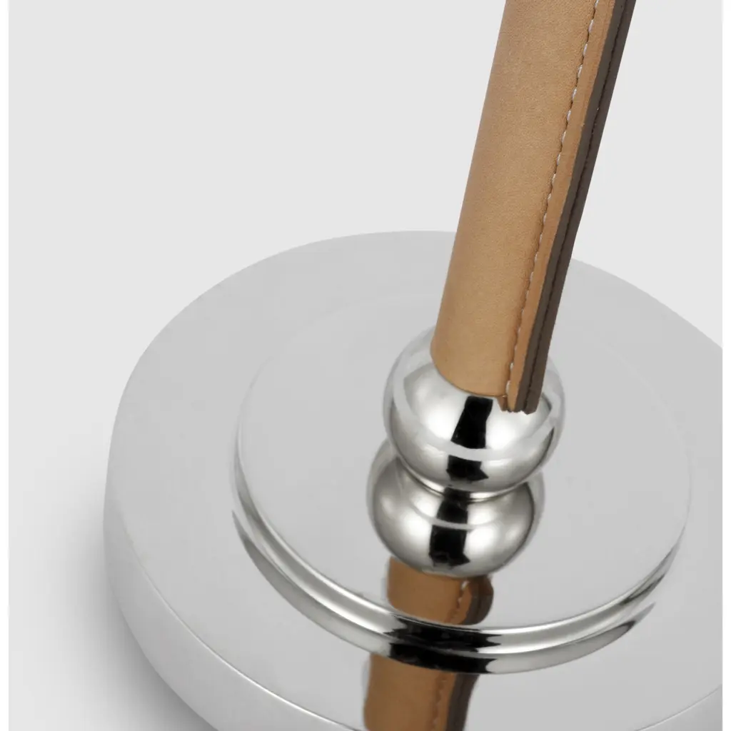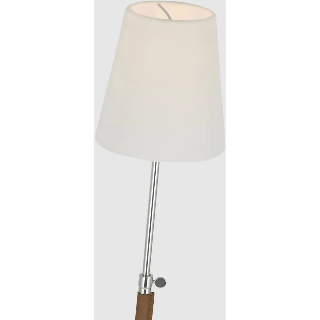 Bryant Wrapped Table Lamp in Polished Nickel and Natural Leather with Linen Shade