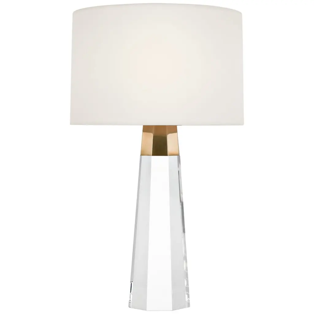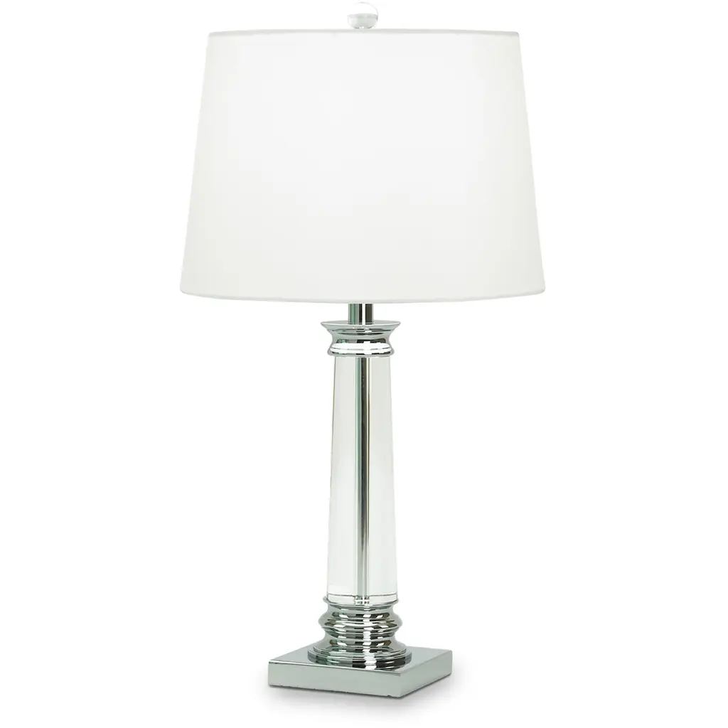 Block Large Table Lamp in Crystal and Polished Silver with Cotton Shade